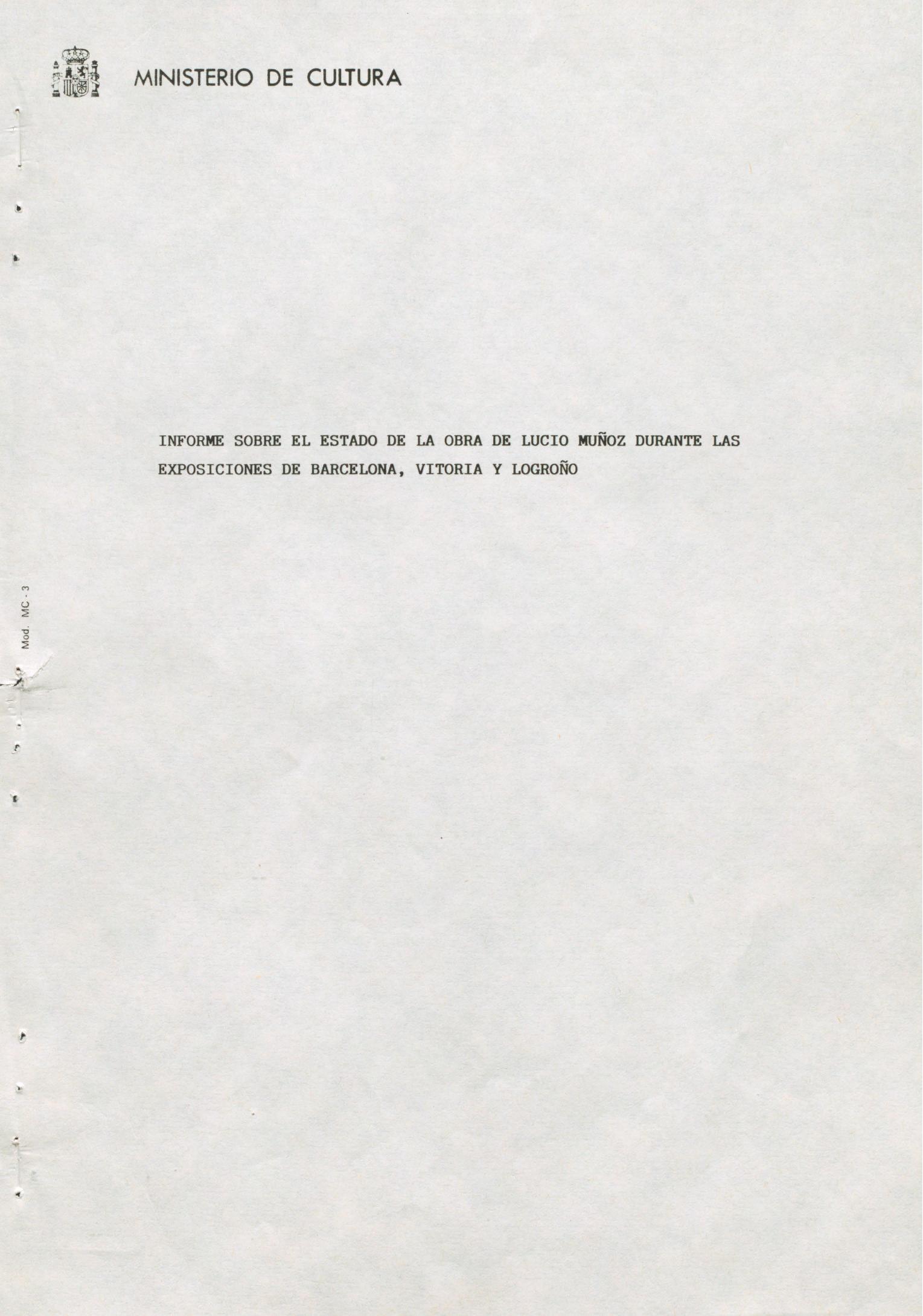 Informe sobre el estado de la obra de Lucio Muñoz durante las exposiciones de Barcelona, Vitoria y Logroño