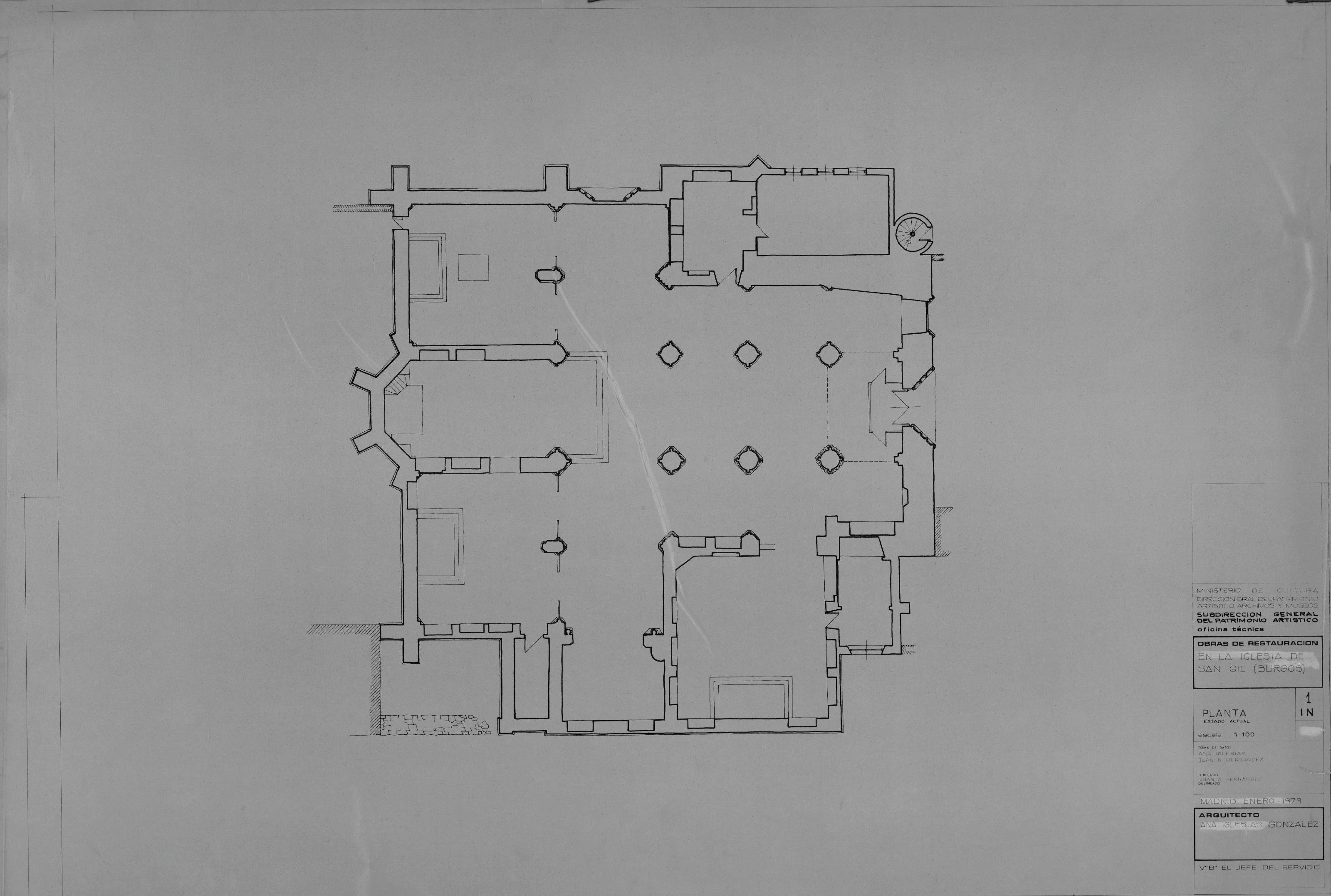 IGLESIA DE SAN GIL. BURGOS.: PLANTA .Estado actual, copia, no hay mas documentacion, plano sin cotas.