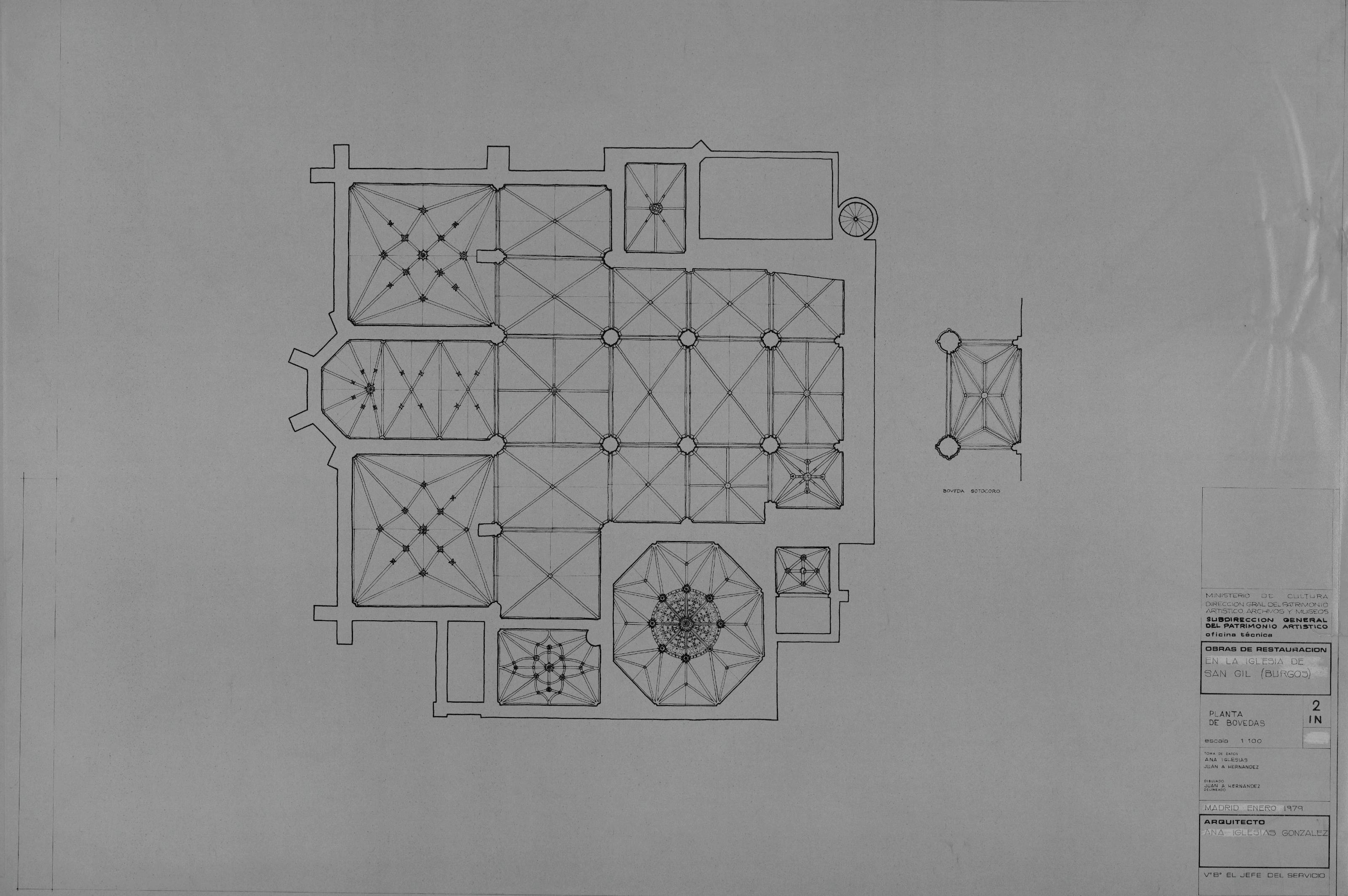 IGLESIA DE SAN GIL. BURGOS.: PLANTA DE BOVEDAS. Plano sin cotas, copia, solo varia la fecha.