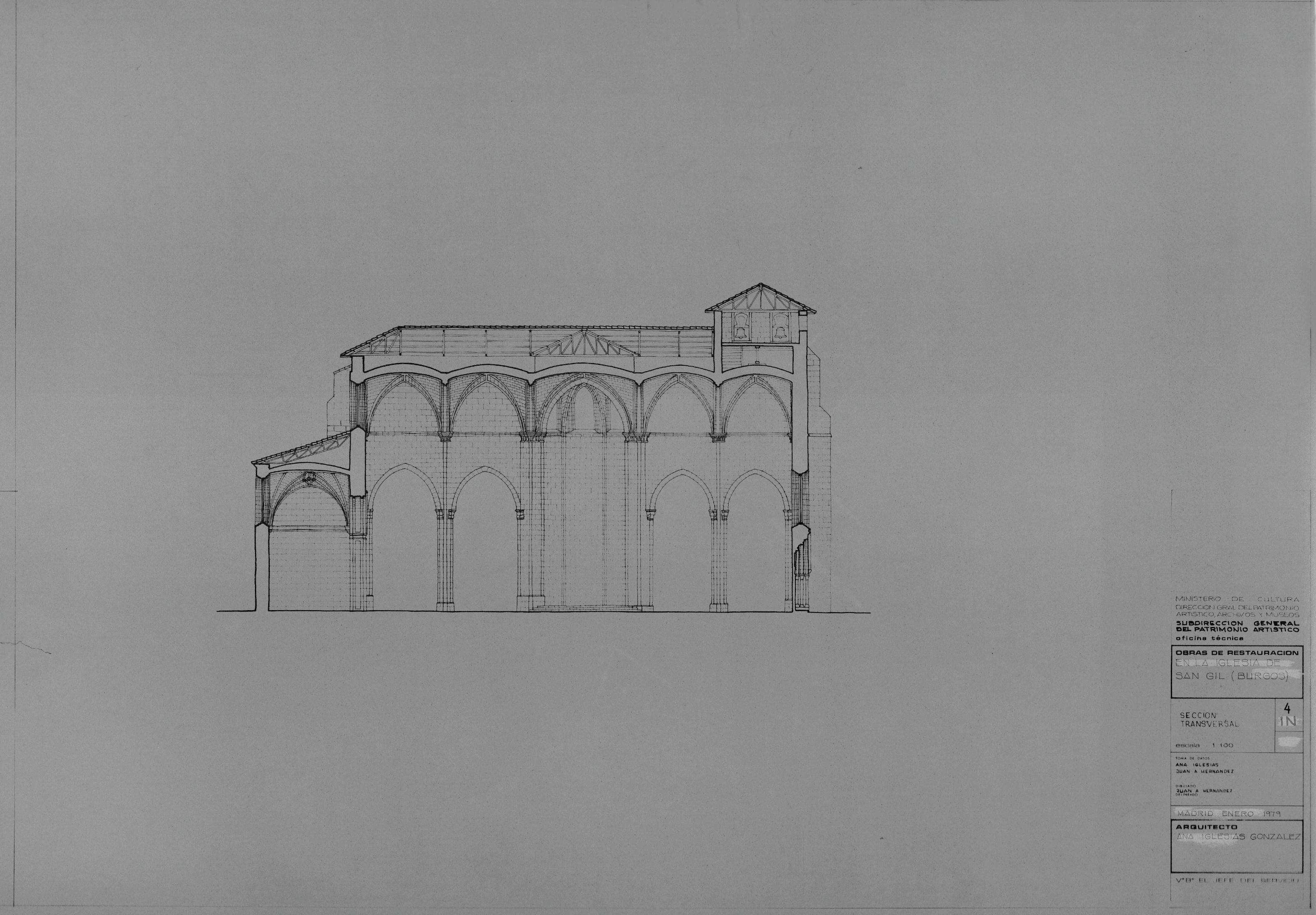 IGLESIA DE SAN GIL. BURGOS.: SECCION TRANSVERSAL. Plano sin cotas, copia, solo varia la fecha.