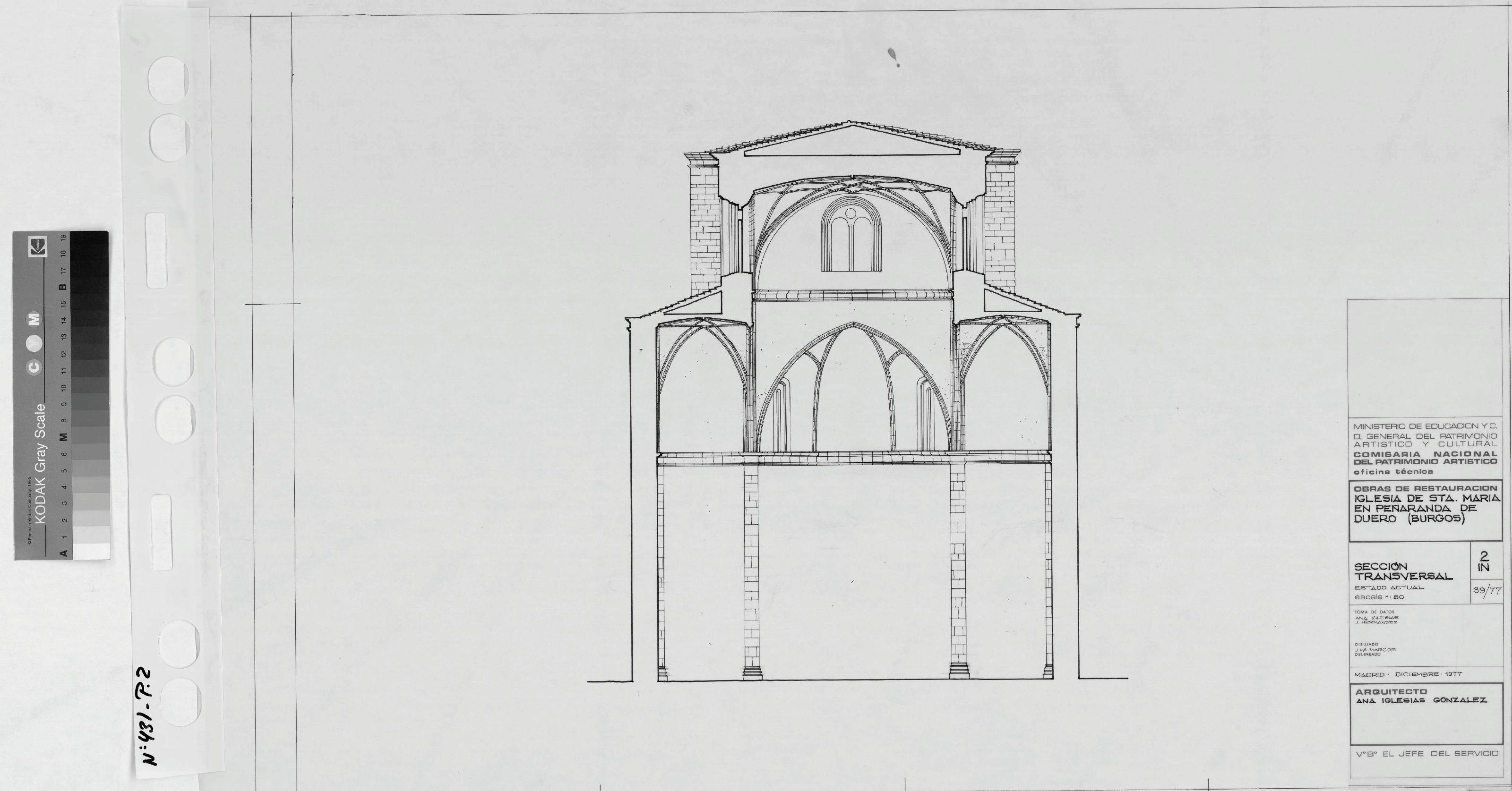 IGLESIA DE SANTA MARIA - PEÑARANDA DE DUERO - .BURGOS -: SECCION TRANSVERSAL. Estado actual. Seccion transversal donde se ve cubiertas, bovedas y muros, plano sin cotas ni alturas.
