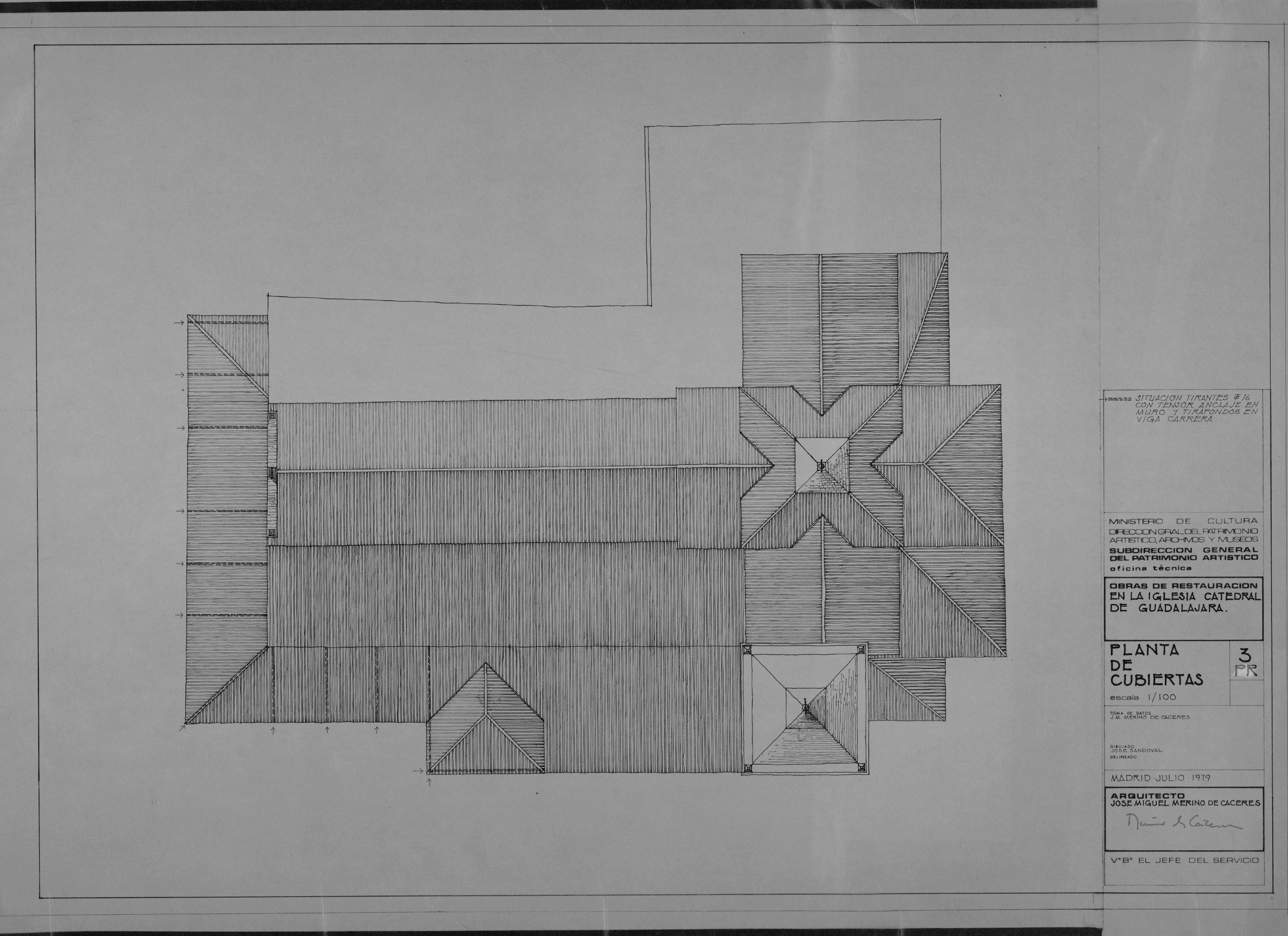 IGLESIA CATEDRAL - GUADALAJARA -: PLANTA DE CUBIERTAS, reformado, en este plano tenemos una leyenda de los trabajos a realizar, plano sin acotar