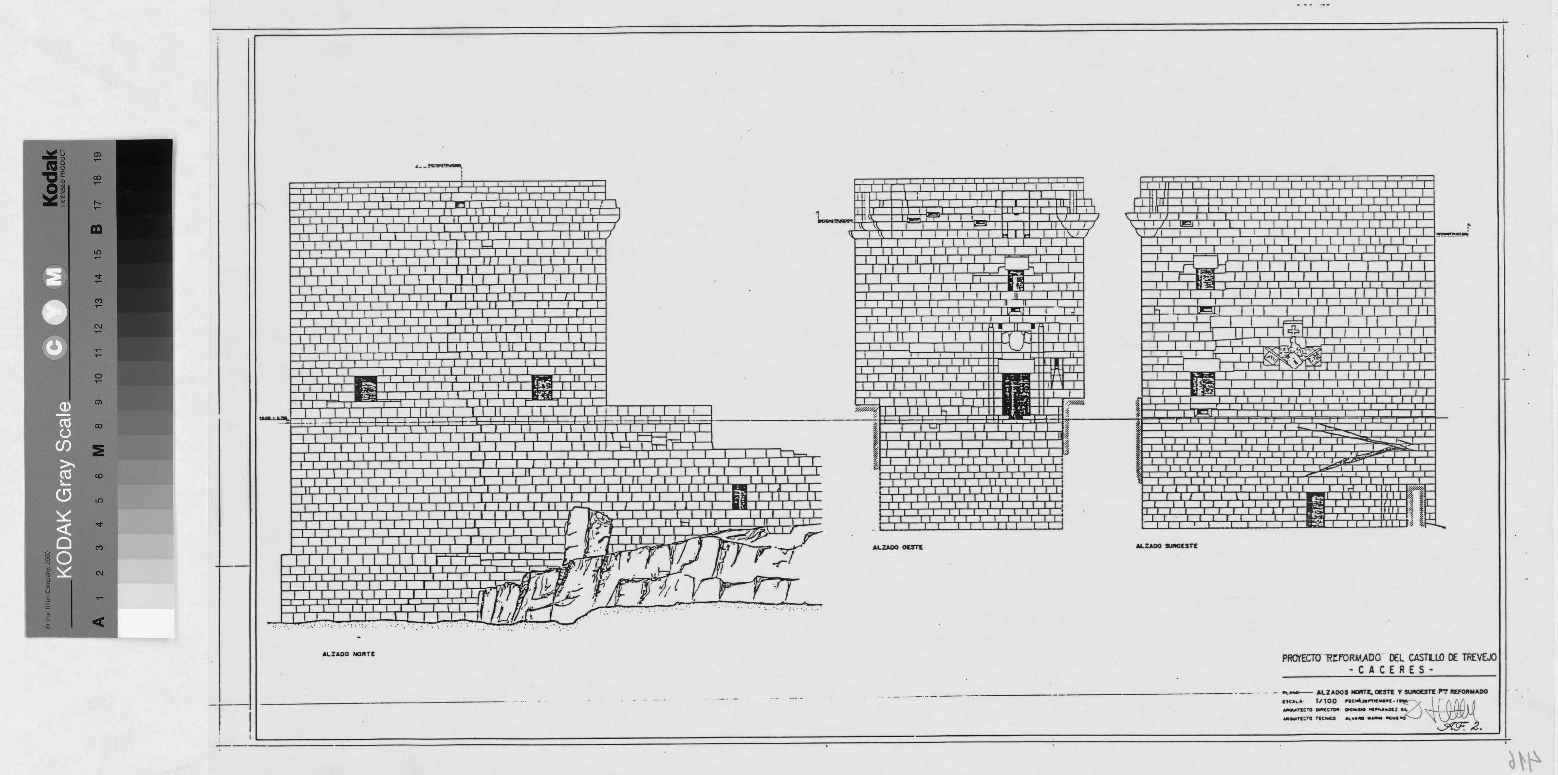 CASTILLO DE TREVEJO: ALZADO NORTE, OESTE Y SUROESTE. PROYECTO REFORMADO