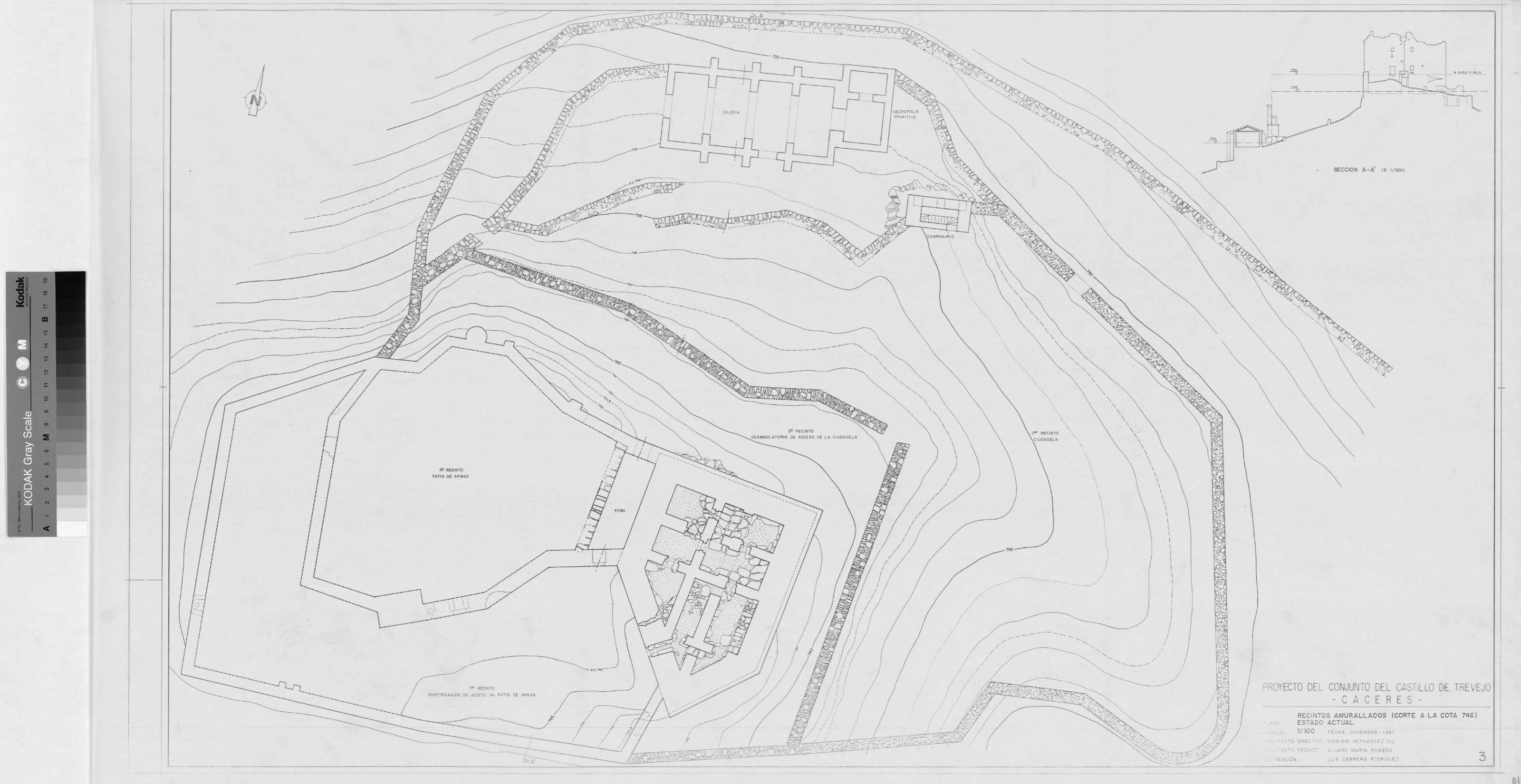 CASTILLO DE TREVEJO: RECINTOS AMURALLADOS. (CORTE A LA COTA 746). ESTADO ACTUAL