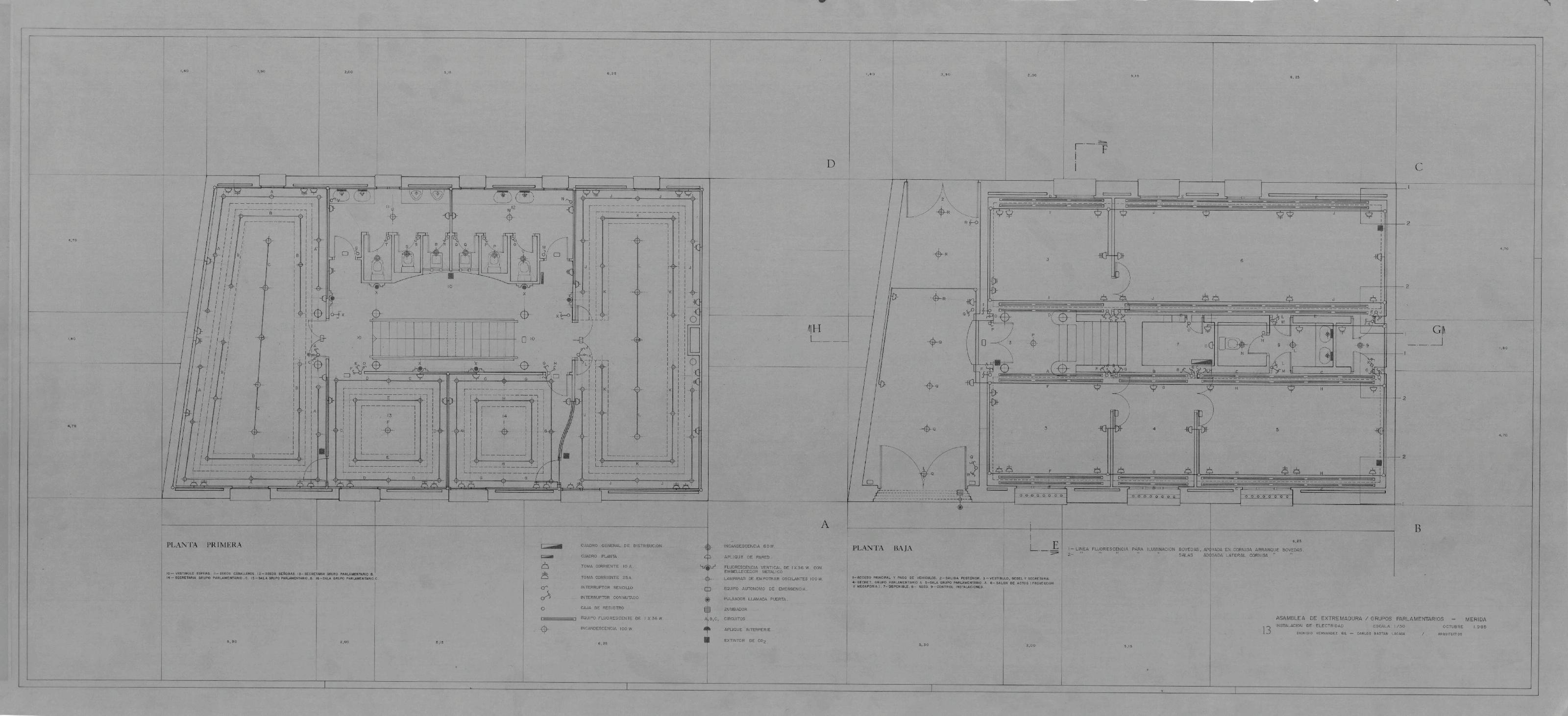 ASAMBLEA DE EXTREMADURA PROYECTO DE REHABILITACIÓN DEL ANTIGUO HOSPITAL DE S. JUAN DE DIOS PARA SEDE DE LA ASAMBLEA: PLANTAS BAJA Y PRIMERA - INSTALACIÓN ELECTRICIDAD Pone en sello " Asamblea de Extremadura - Grupos Parlamentarios" Con especificación de circuitos, notas y leyendas. Con cotas y denominación de usos . Sin firmar