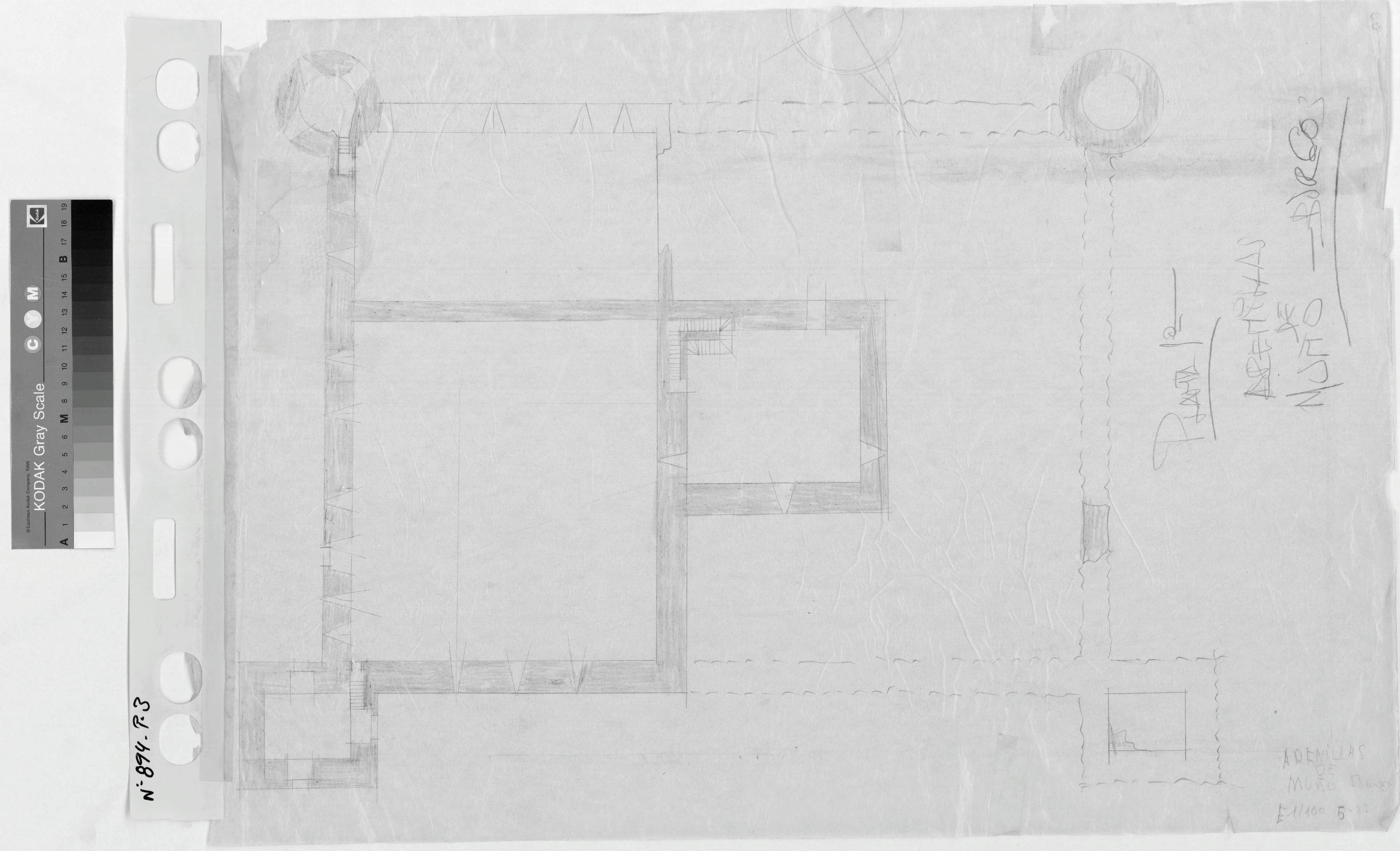 CASTILLO DE MAZUELO DE MUÑO -BURGOS- desaparecido.: PLANTA PRIMERA. Croquis,planta donde se ve marcado los muros, los huecos de ventanas y puertas, dibujo sin cotas.
