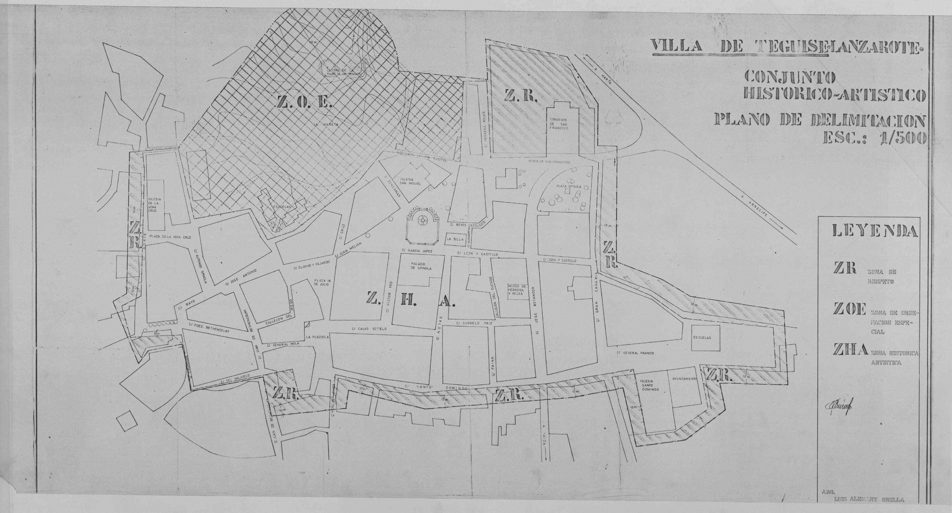 VILLA DE TEGUISE: PLANTA DE LA ZONA AFECTADA POR CONJUNTO HISTORICO ARTISTICO,CON DENOMINACION DE ZONA DE RESPETO, ZONA ESPECIAL Y ZONA HISTORICA