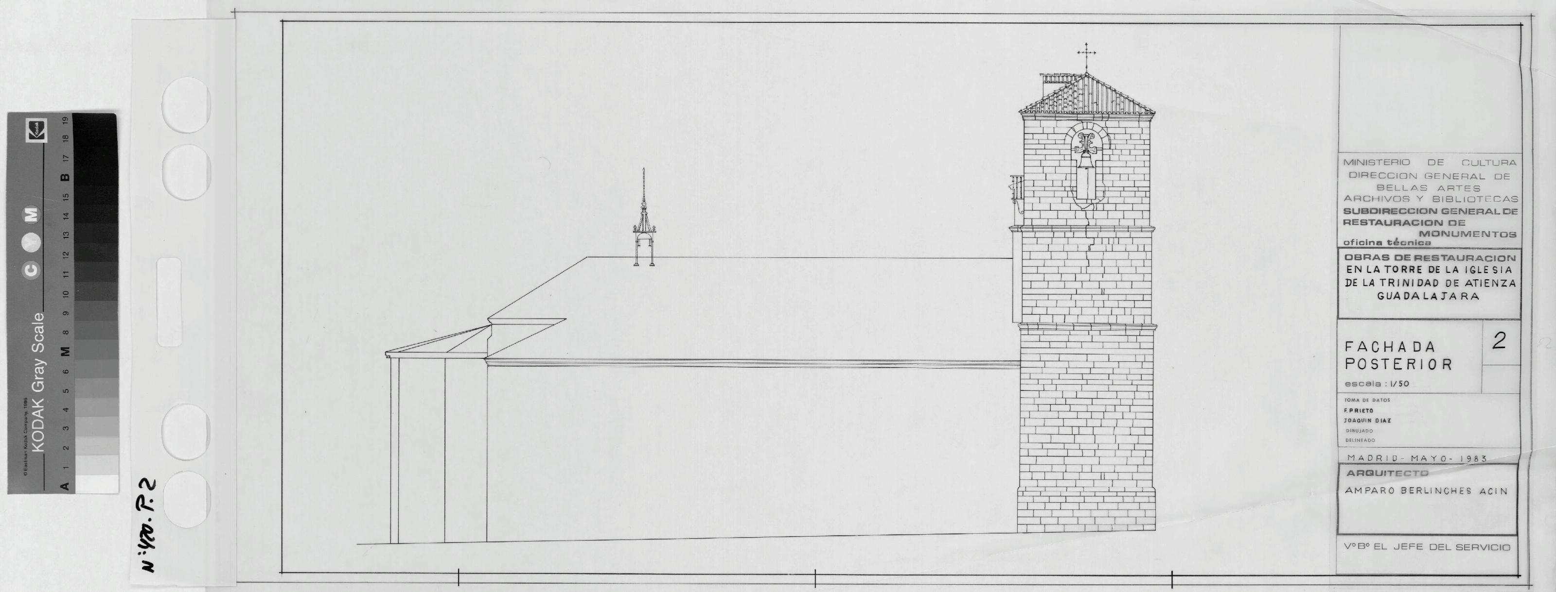 TORRE DE LA IGLESIA DE LA TRINIDAD - ATIENZA - GUADALAJARA-: FACHADA POSTERIOR, Alzado esquematico , plano sin cotas ,