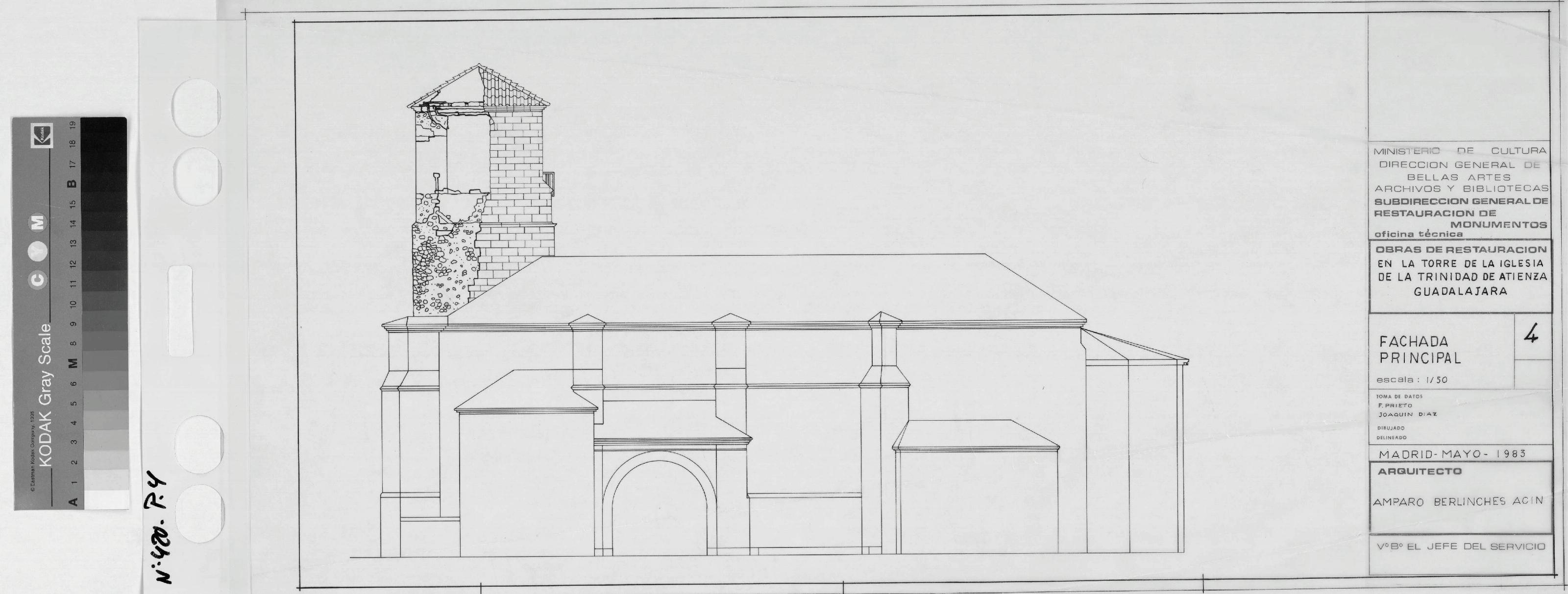 TORRE DE LA IGLESIA DE LA TRINIDAD - ATIENZA - GUADALAJARA-: FACHADA PRINCIPAL, Alzado esquematico, plano sin cotas ,