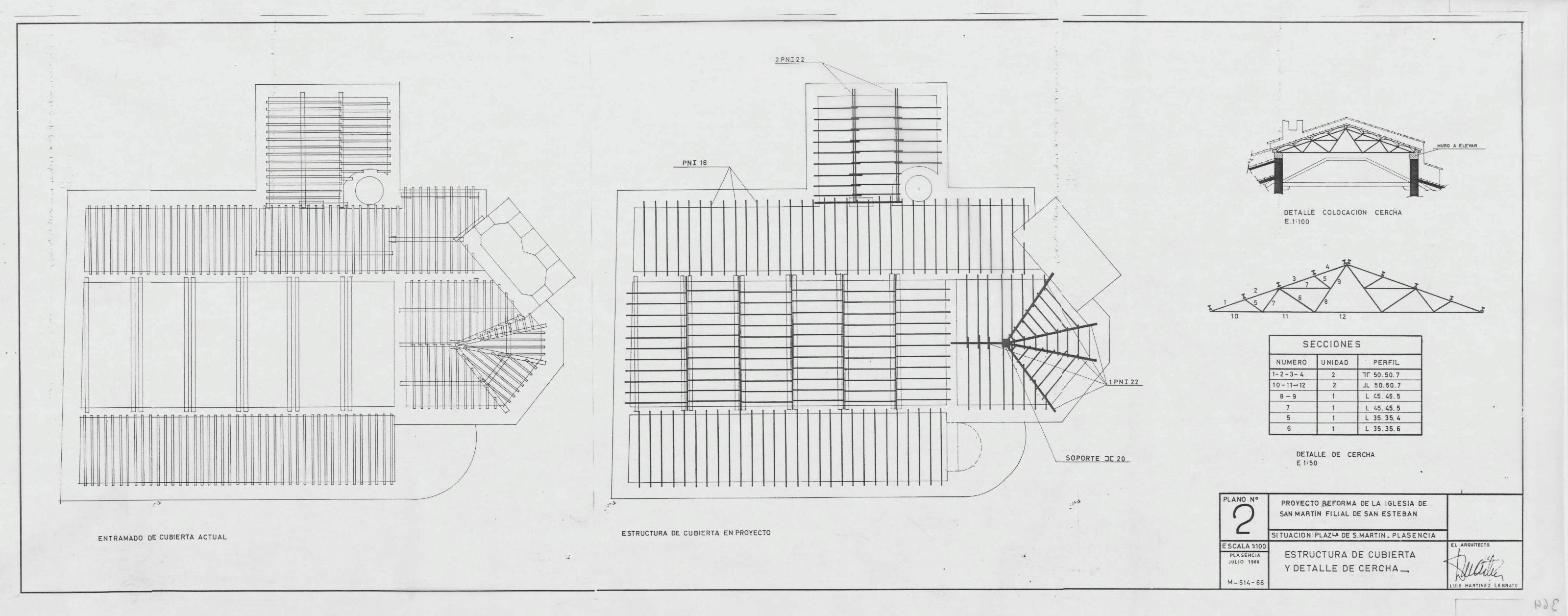 IGLESIA DE SAN MARTIN: ESTRUCTURA DE CUBIERTA Y DETALLE DE CERCHA