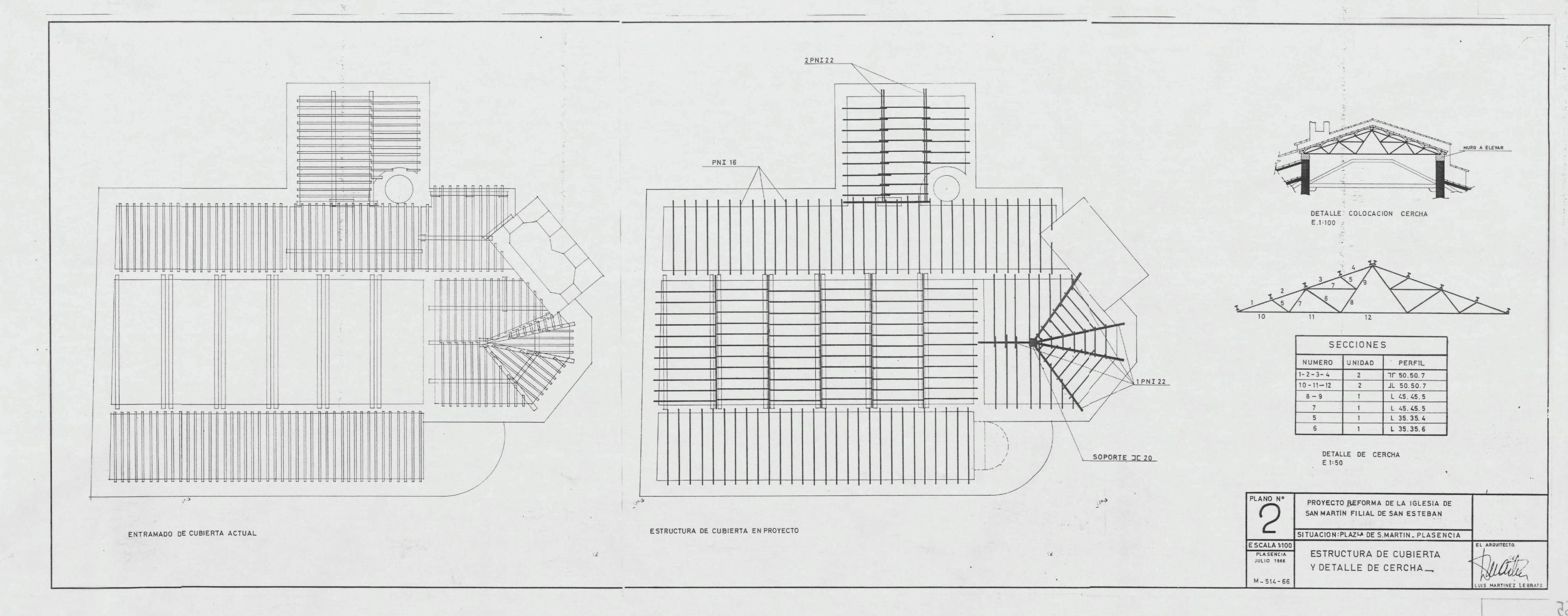 IGLESIA DE SAN MARTIN: ESTRUCTURA DE CUBIERTA Y DETALLE DE CERCHA