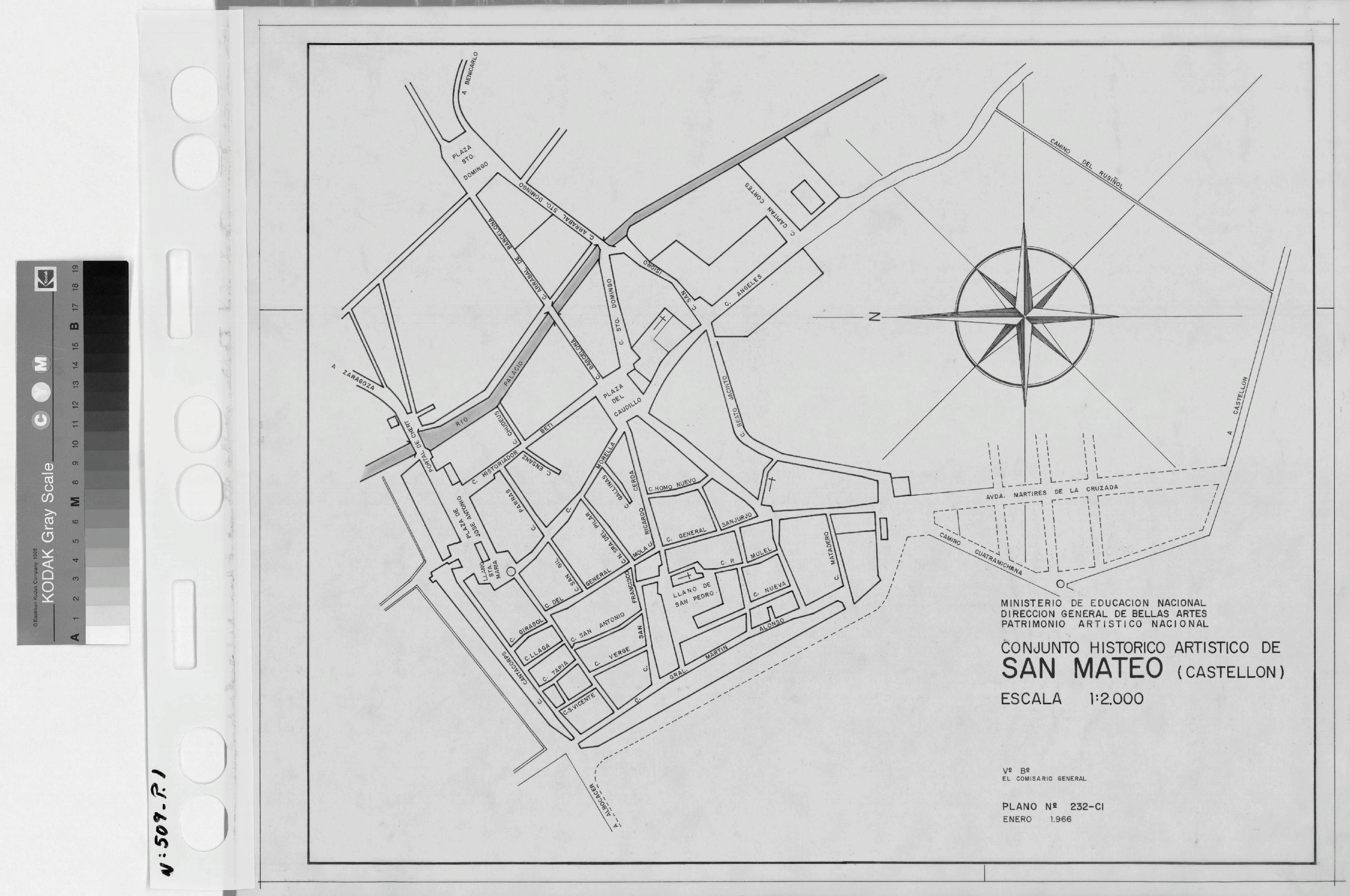 CONJUNTO HISTORICO ARTISTICO DE SAN MATEO.- CASTELLON-: PLANO DE SITUACION, o emplazamiento del conjunto de San Mateo, estan marcadas todas las calles, plano sin cotas.