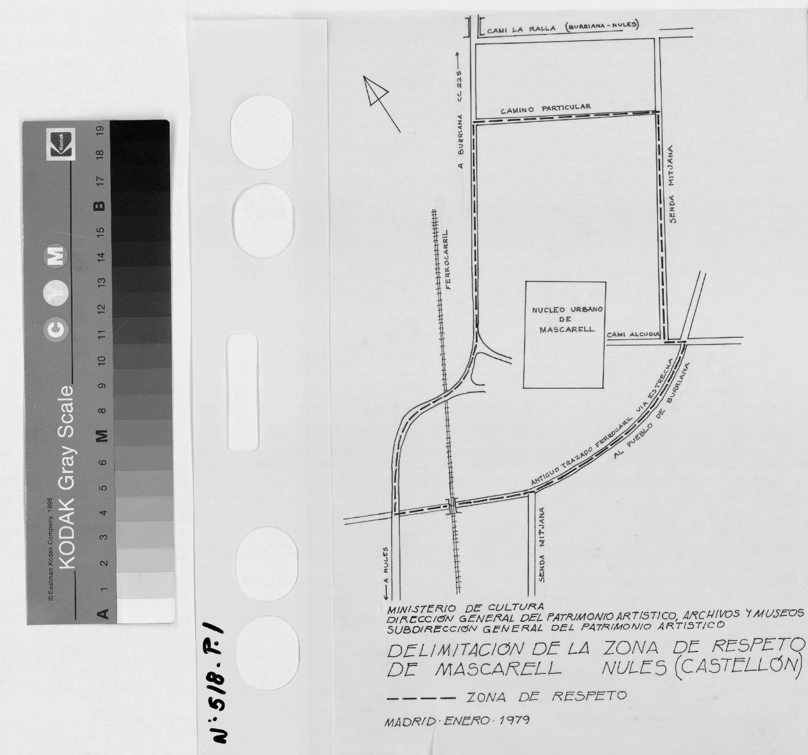 DELIMITACION DE LA ZONA DE RESPETO DE MASCARELL. -NULES- CASTELLON: PLANO DE SITUACION, o emplazamiento (croquis) de la delimitacion de respeto del nucleo urbano de Mascarell, plano sin cotas.