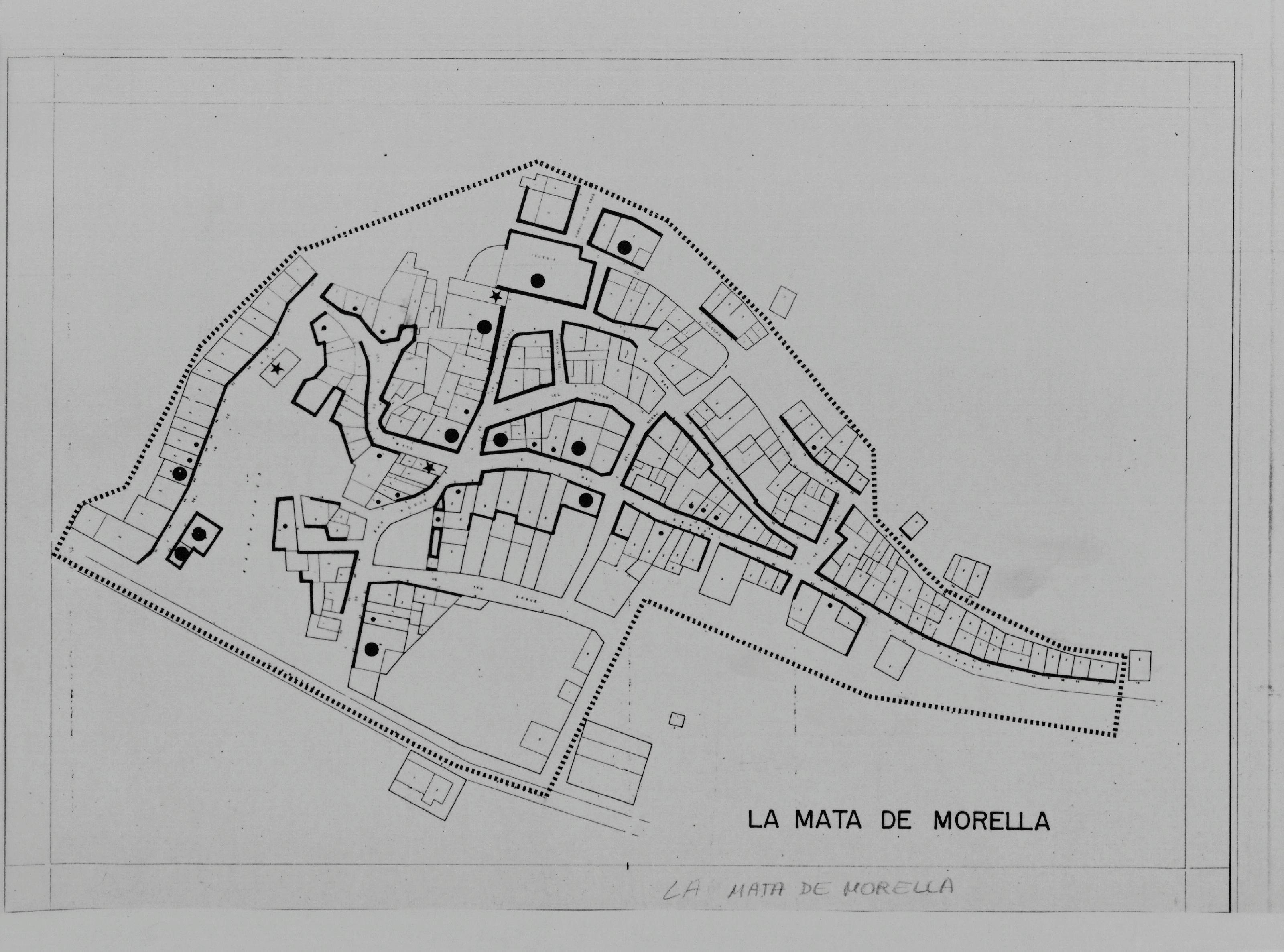 CONJUNTO HISTORICO ARTISTICO DE LA MATA DE MORELLA. -CASTELLON-: PLANO DE SITUACION, o emplazamiento de la delimitacion de la zona historica de la ciudad , plano sin cotas, reducido.