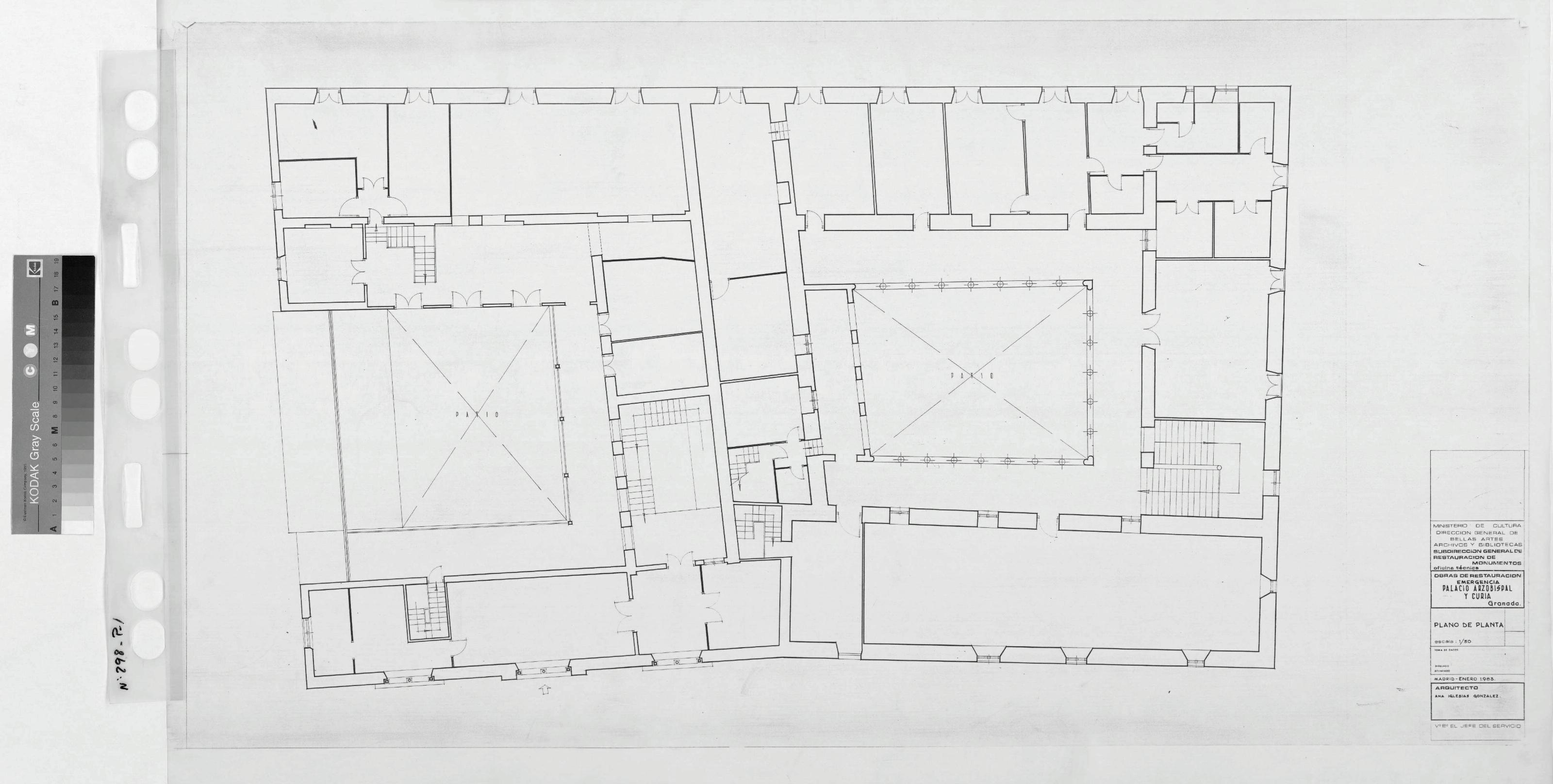 PALACIO ARZOBISPAL Y CURIA .- GRANADA-: PLANO DE PLANTA ( REDUCIDO) , plano de distribucion, sin acotar y sin marcar dependencias.