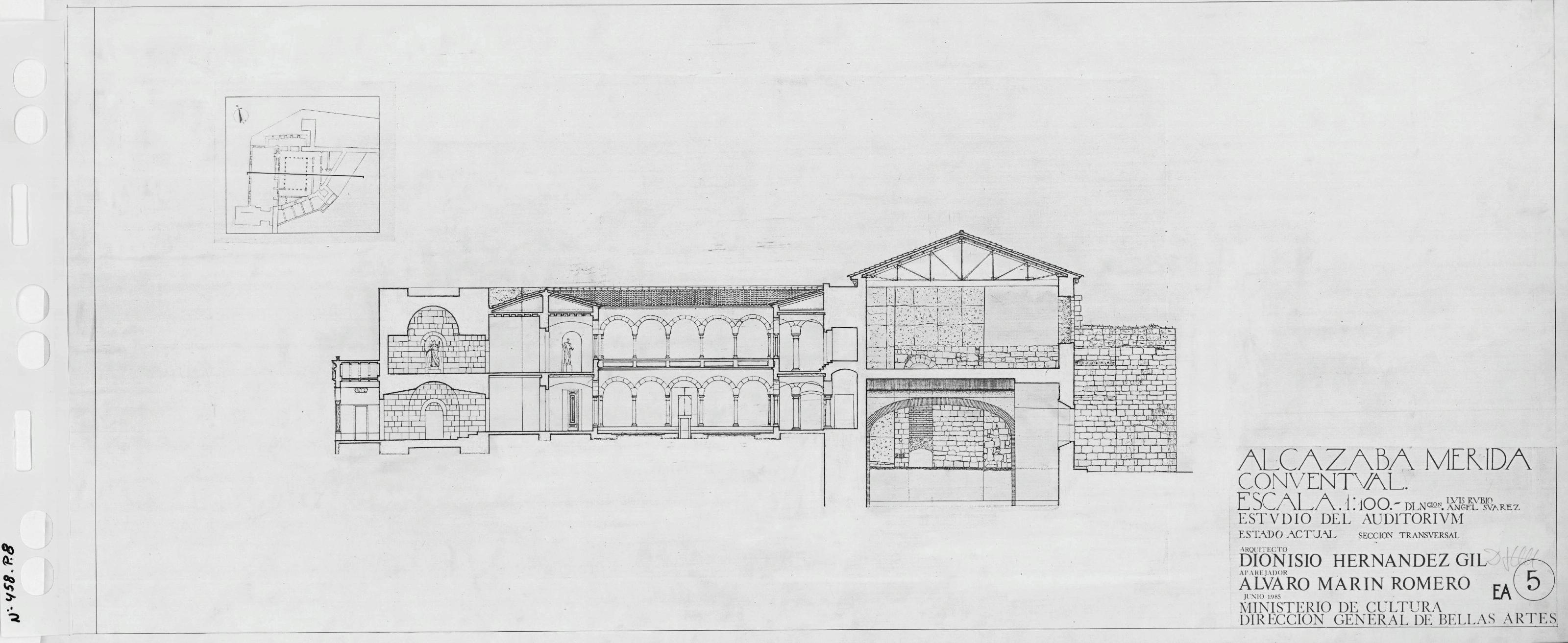 ALCAZABA DE MERIDA (Badajoz) Estudio del Auditorium: SECCION TRANSVERSAL Estado actual Con despiece de paramentos Consta además de pequeña planta de ubicación. Sin notas ni cotas. Firmado