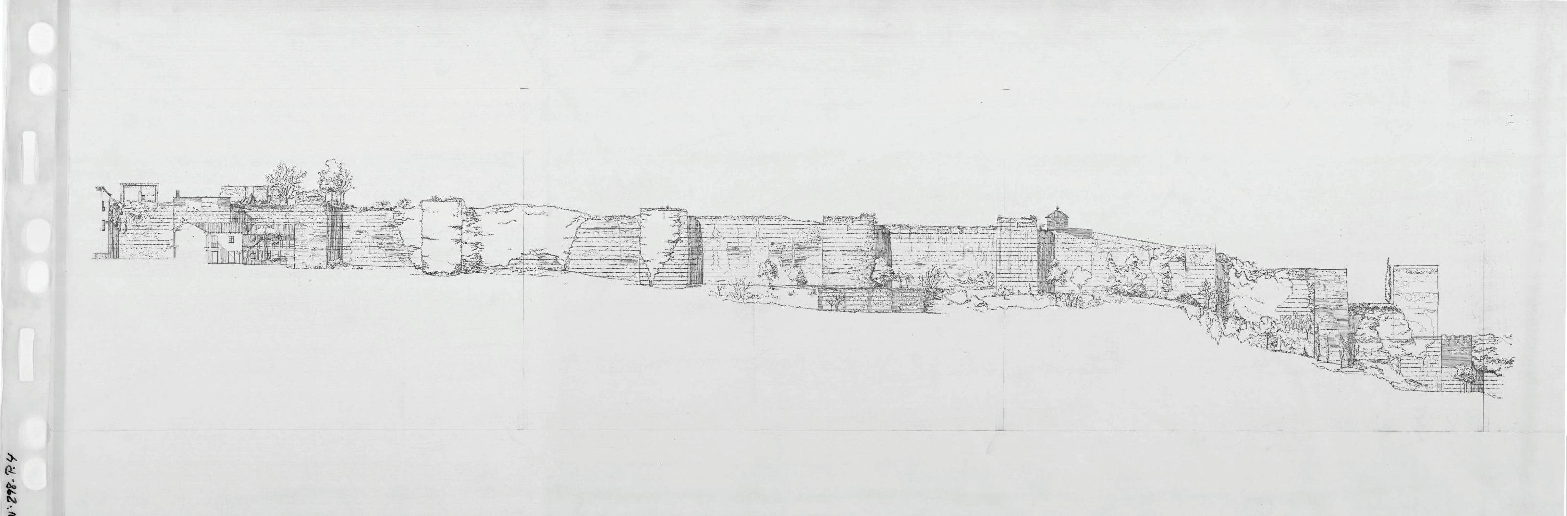 PALACIO ARZOBISPAL Y CURIA .- GRANADA-: ALZADO DE LA MURALLA . REDUCIDO. sin acotar.