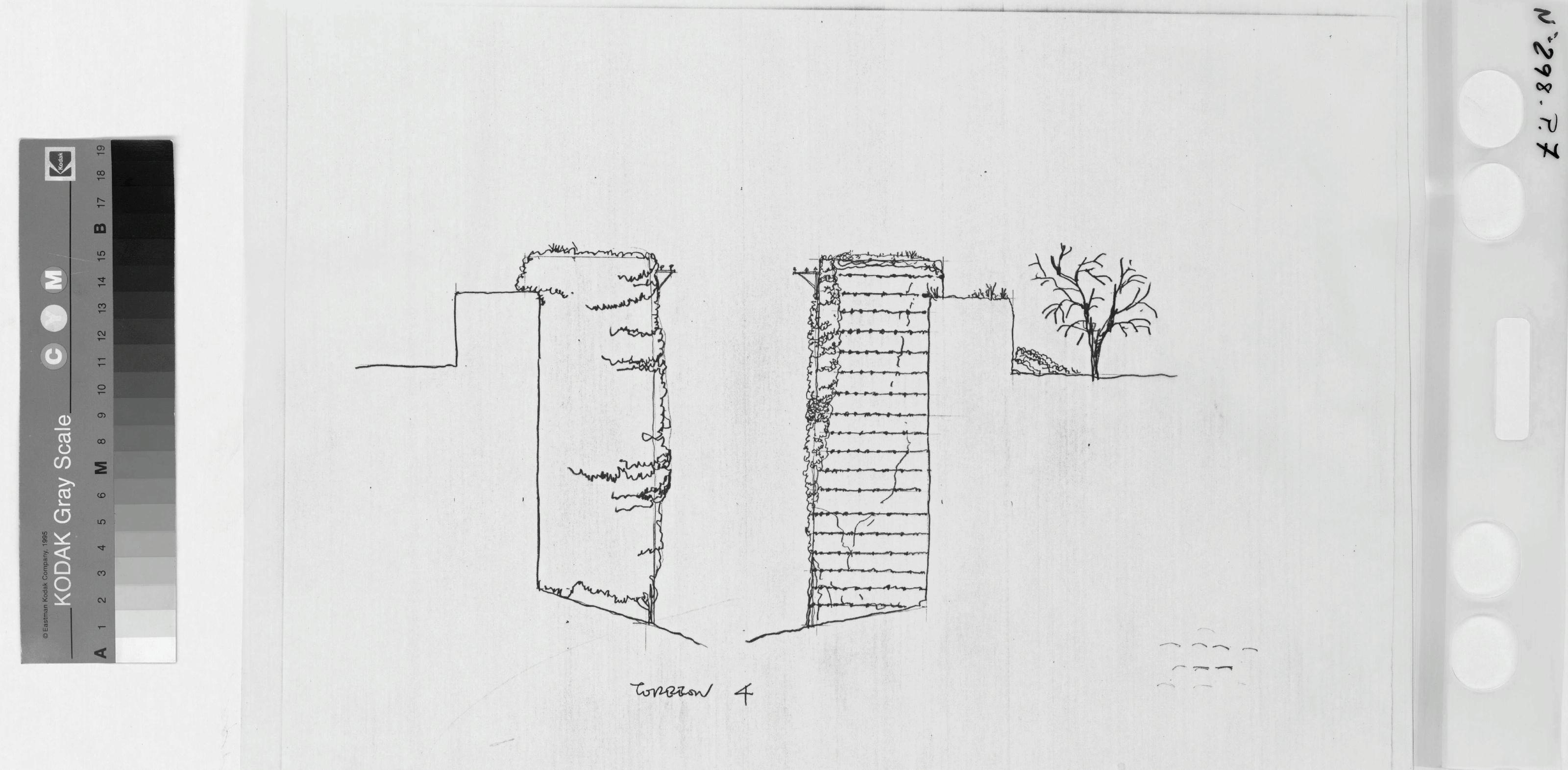 PALACIO ARZOBISPAL Y CURIA .- GRANADA-: ALZADO DE LA MURALLA. Torreon 4. Con seccion dibujo croquizado. Sin acotar
