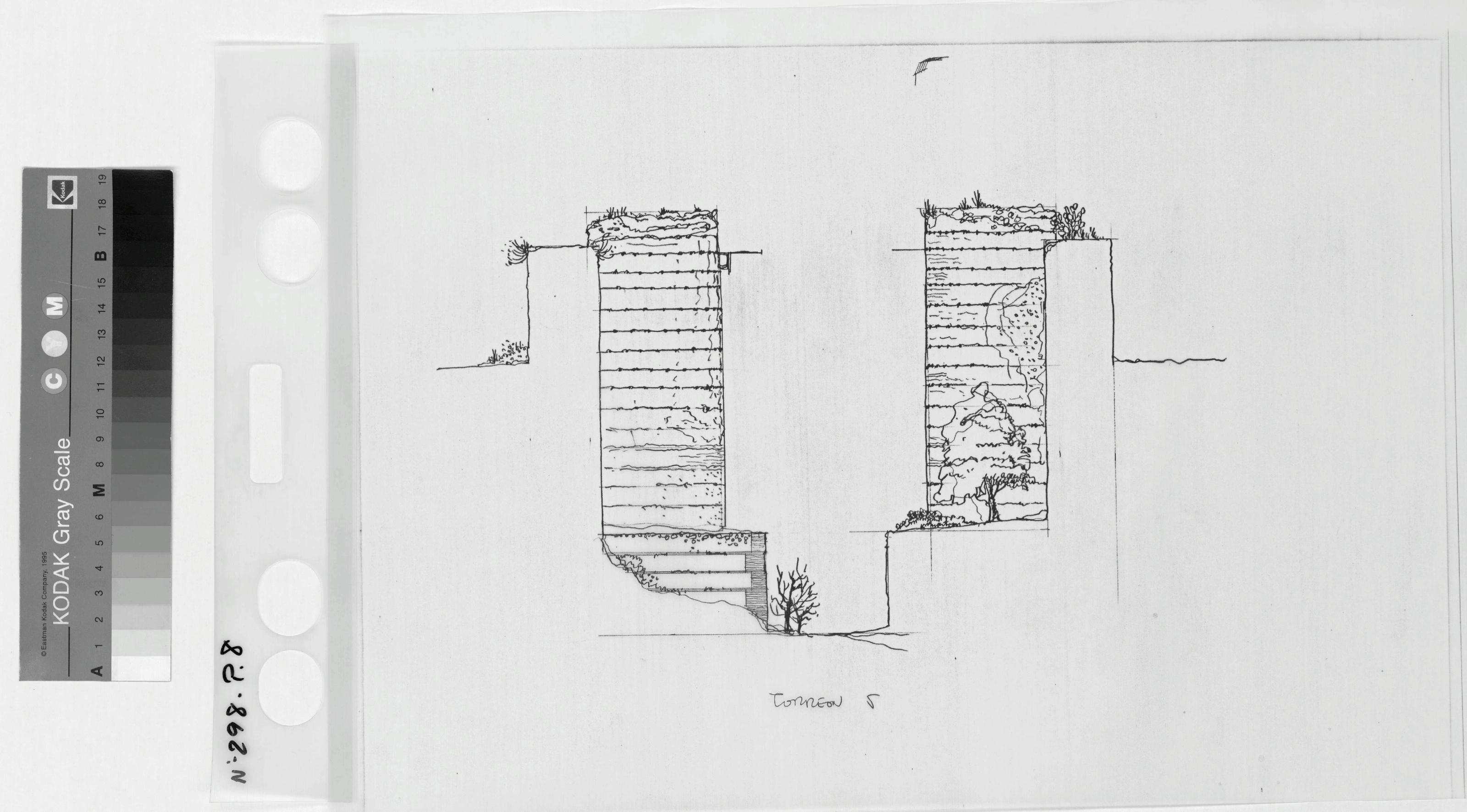 PALACIO ARZOBISPAL Y CURIA .- GRANADA-: ALZADO DE LA MURALLA. Torreon 5. Con seccion dibujo croquizado. Sin acotar