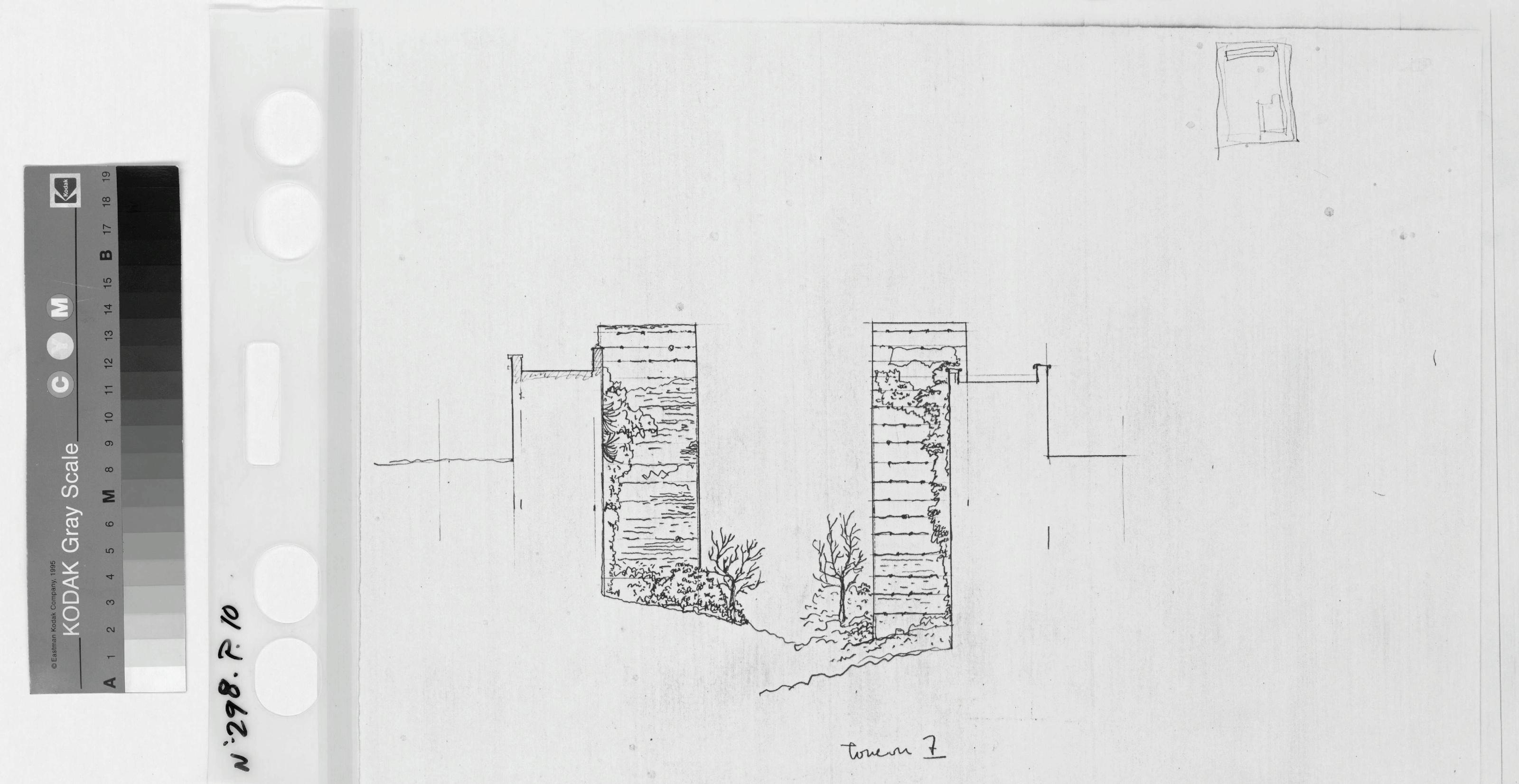 PALACIO ARZOBISPAL Y CURIA .- GRANADA-: ALZADO DE LA MURALLA. Torreon 7. Con seccion dibujo croquizado. Sin acotar