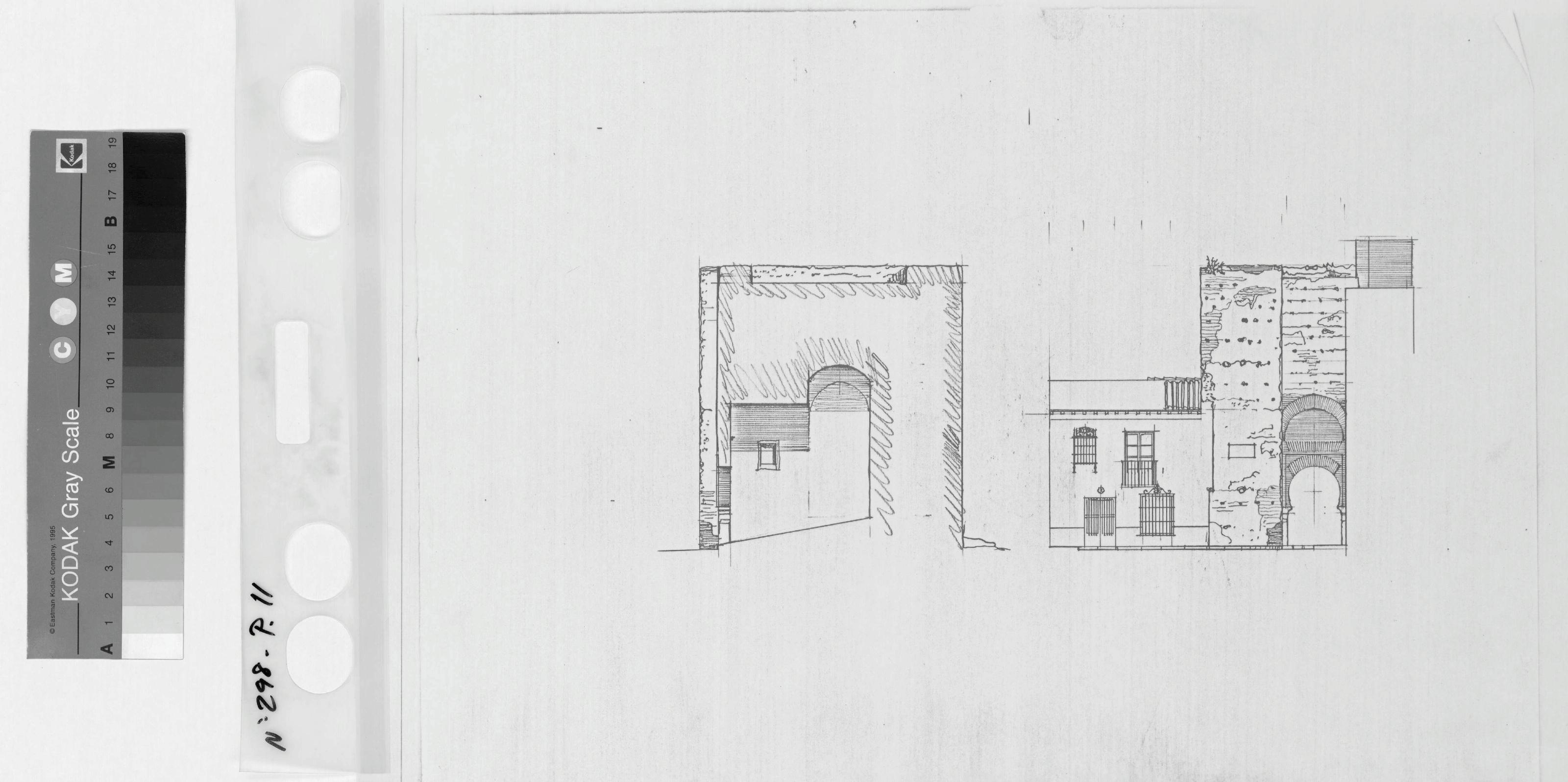 PALACIO ARZOBISPAL Y CURIA .- GRANADA-: ALZADO Y SECCION DE LA MURALLA. .dibujo croquizado. Sin acotar