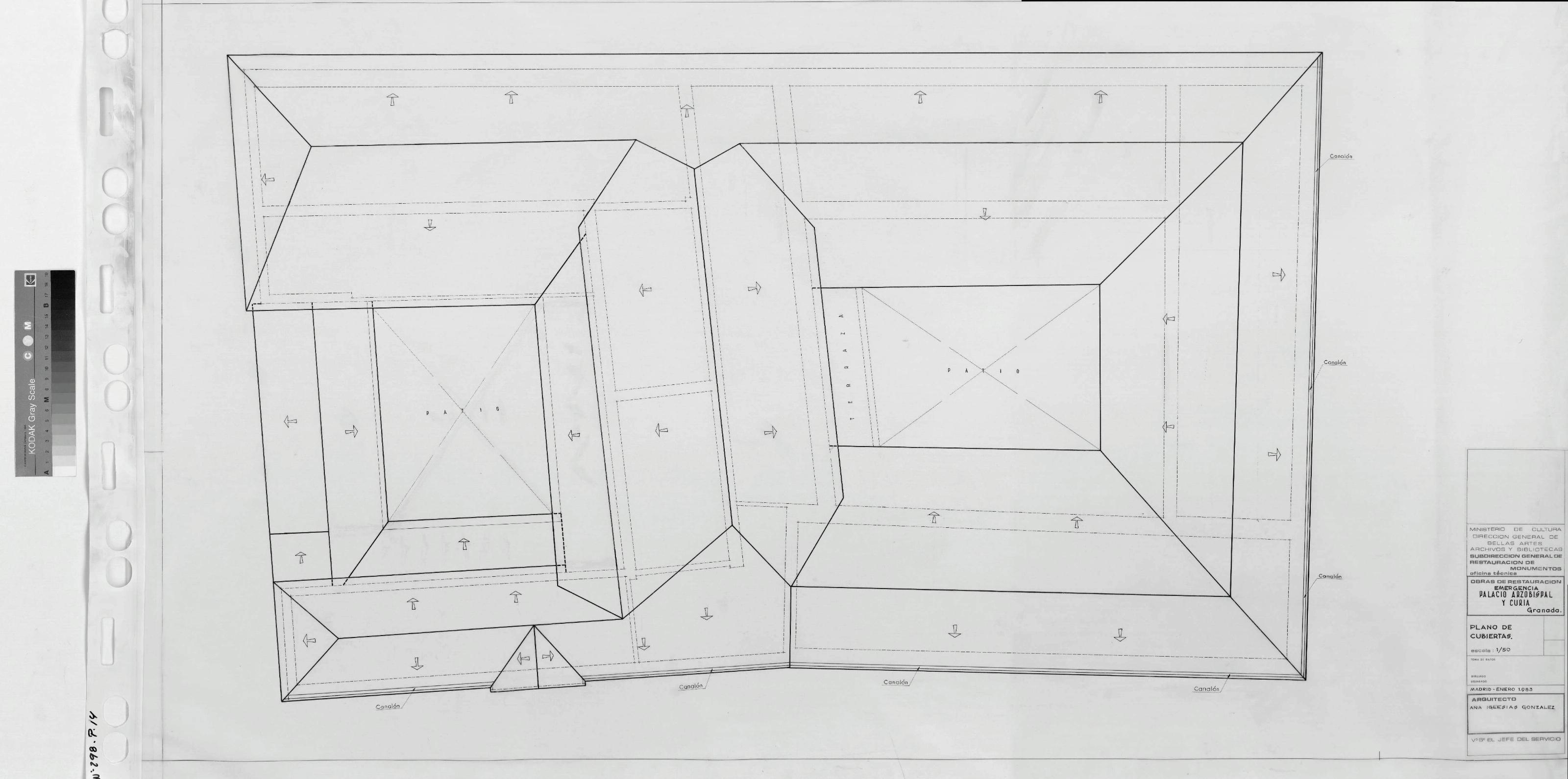 PALACIO ARZOBISPAL Y CURIA .- GRANADA-: PLANO DE CUBIERTAS, plano , donde aparecen dibujadas todas las pendientes de la cubierta, plano sin acotar.