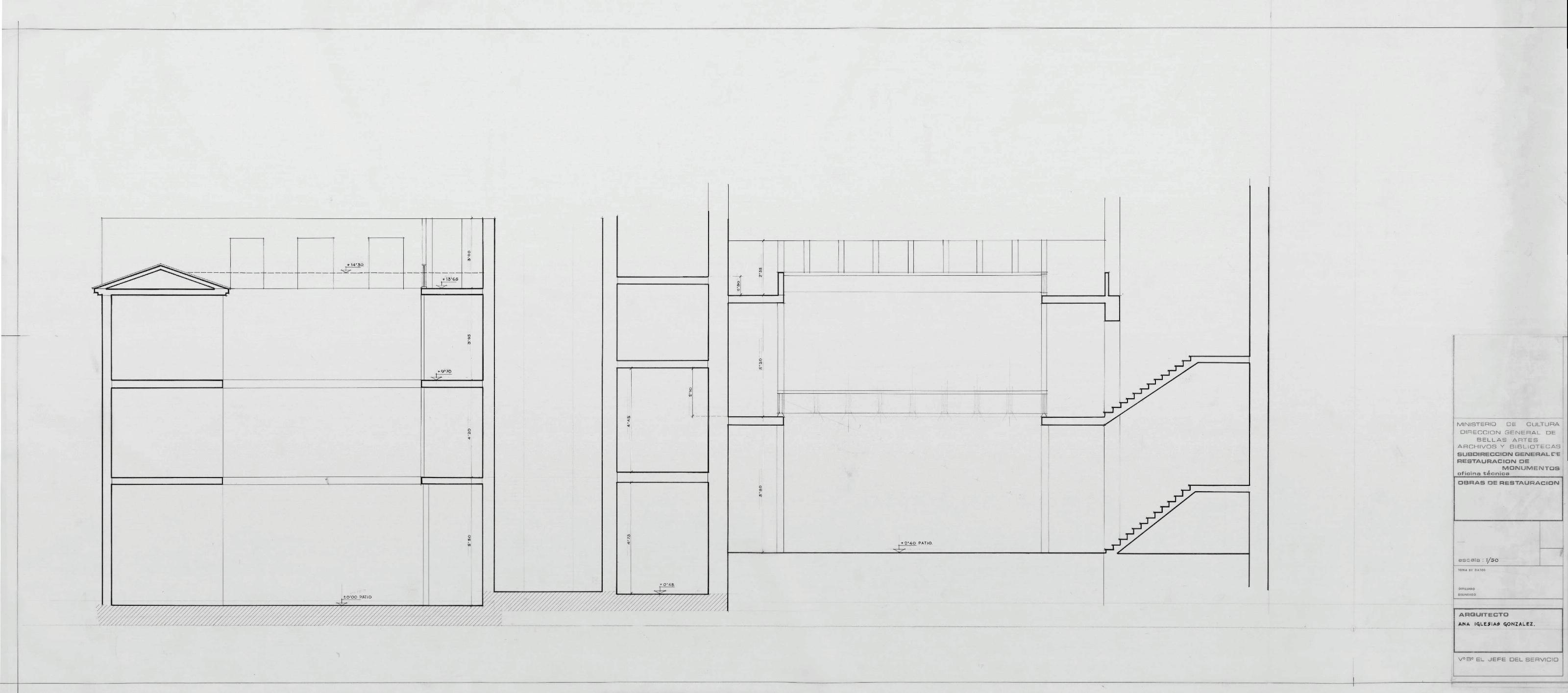 PALACIO ARZOBISPAL Y CURIA .- GRANADA-: PLANO DE SECCIONES, Plano de secciones sin terminar , tiene alguna cota de altura.