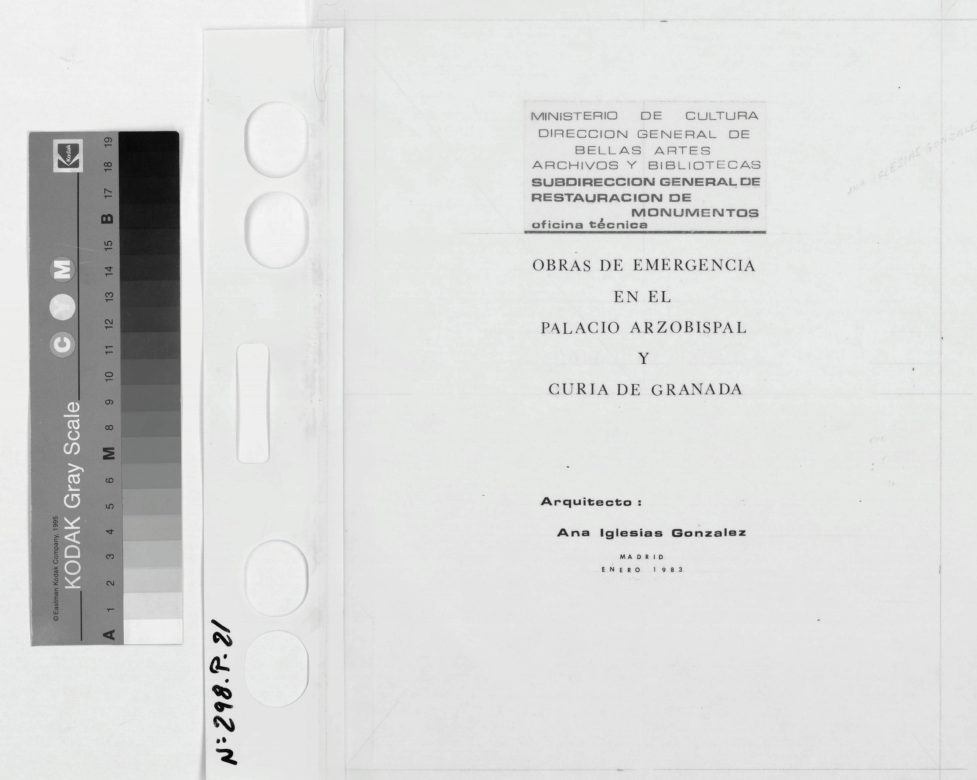 PALACIO ARZOBISPAL Y CURIA .- GRANADA-: PORTADA. Caratula del proyecto.
