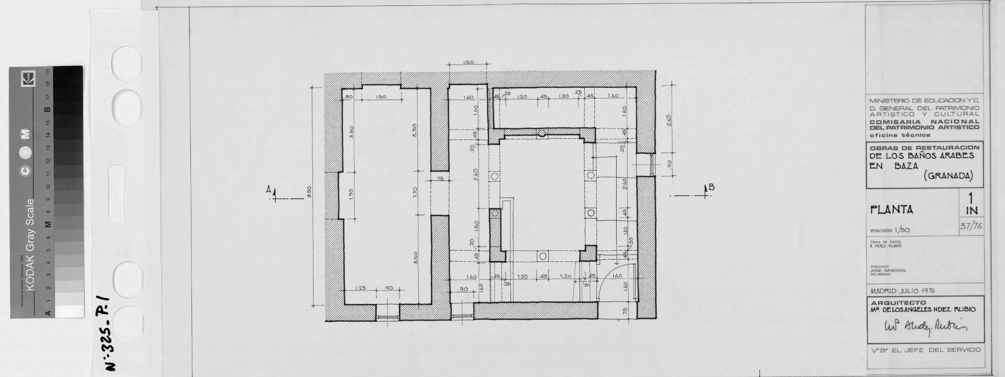 BAÑOS ARABES .- GRANADA-: PLANTA . Planta general, plano de distribucion, acotado y con los muros regruesados.
