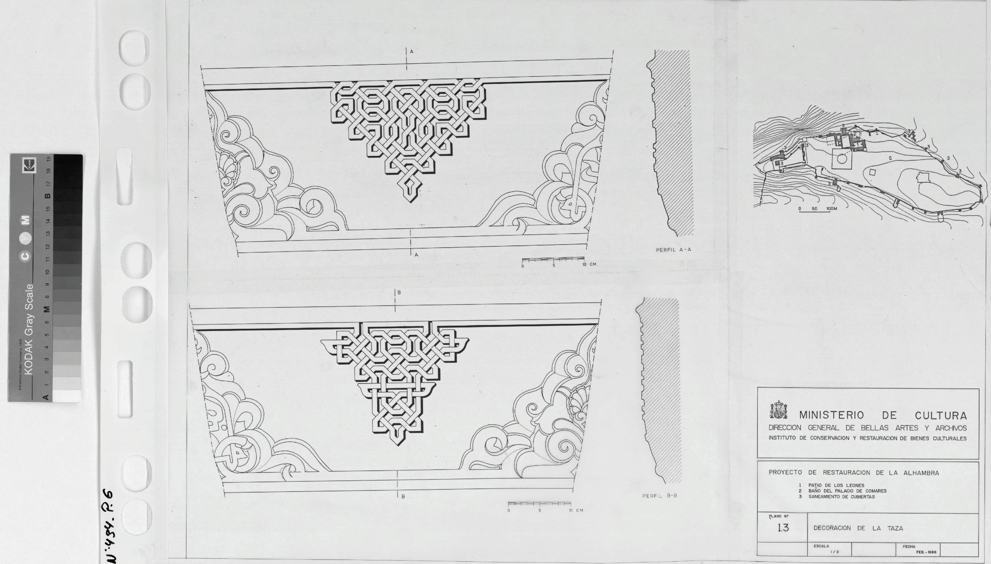 LA ALHAMBRA . -GRANADA-: DETALLES, DECORACION DE LA TAZA, perfiles A y B, plano sin cotas.