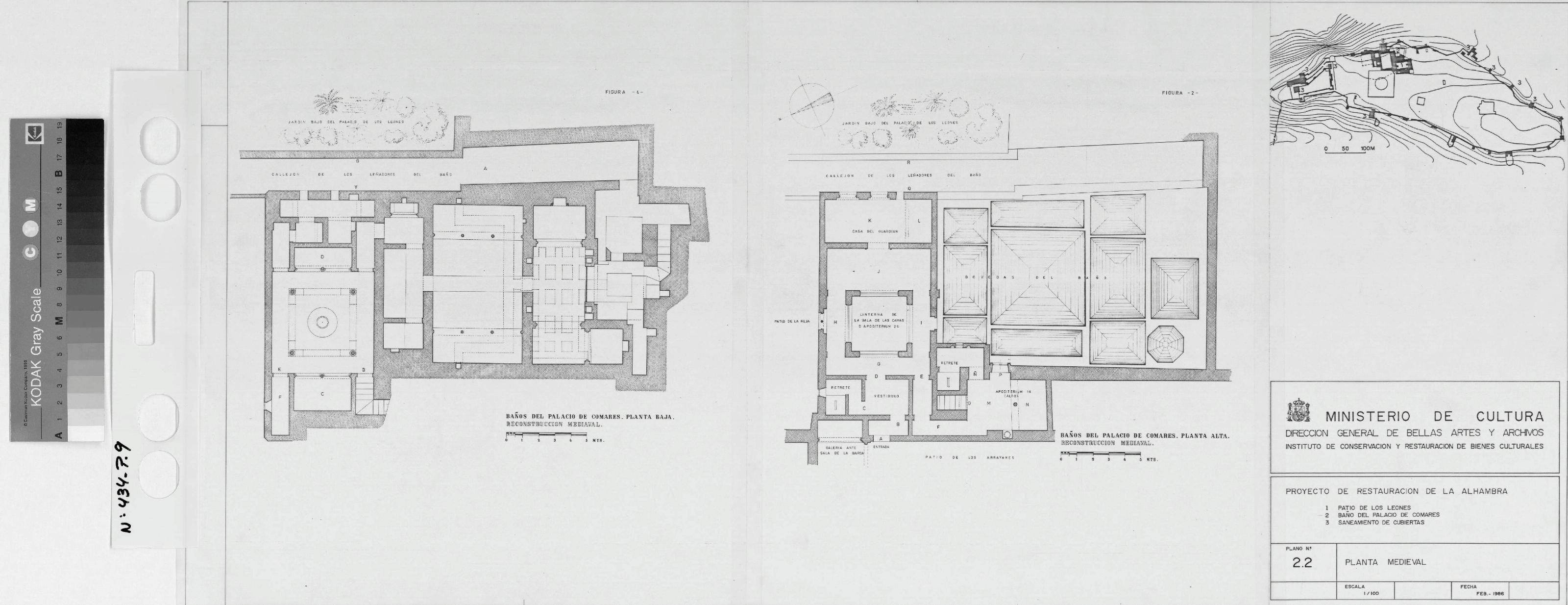 LA ALHAMBRA . -GRANADA-: PLANTA MEDIEVAL, plantas baja y alta, muros regruesados , señala alguna dependencia, plano sin cotas.