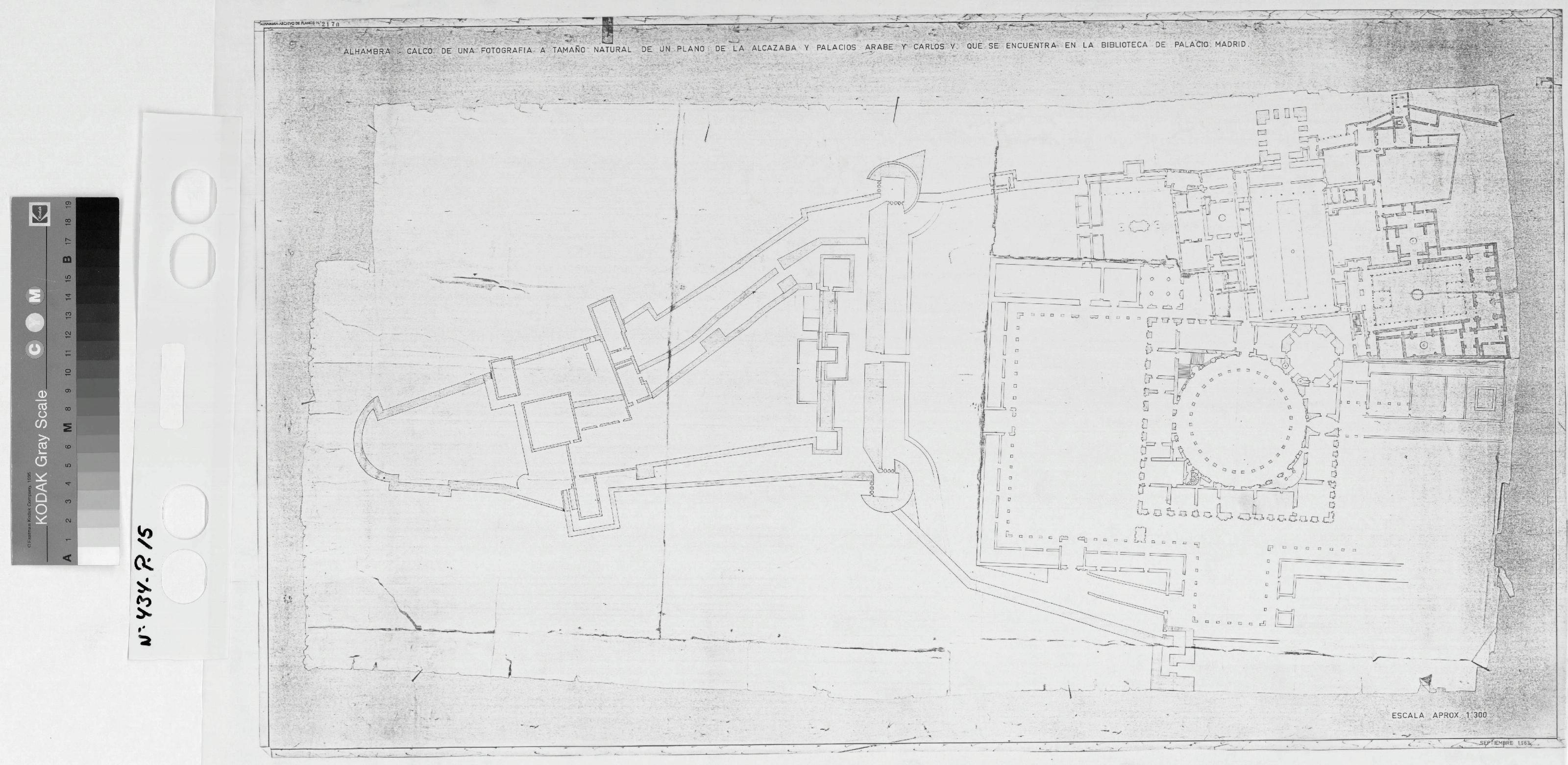 LA ALHAMBRA . -GRANADA-: PLANO DE LA ALHAMBRA calco de una fotografia, a tamaño natural de un plano de la alcazaba, y palacios arabe y carlos V que se encuentra en la Biblioteca de palacio .plano sin cotas.