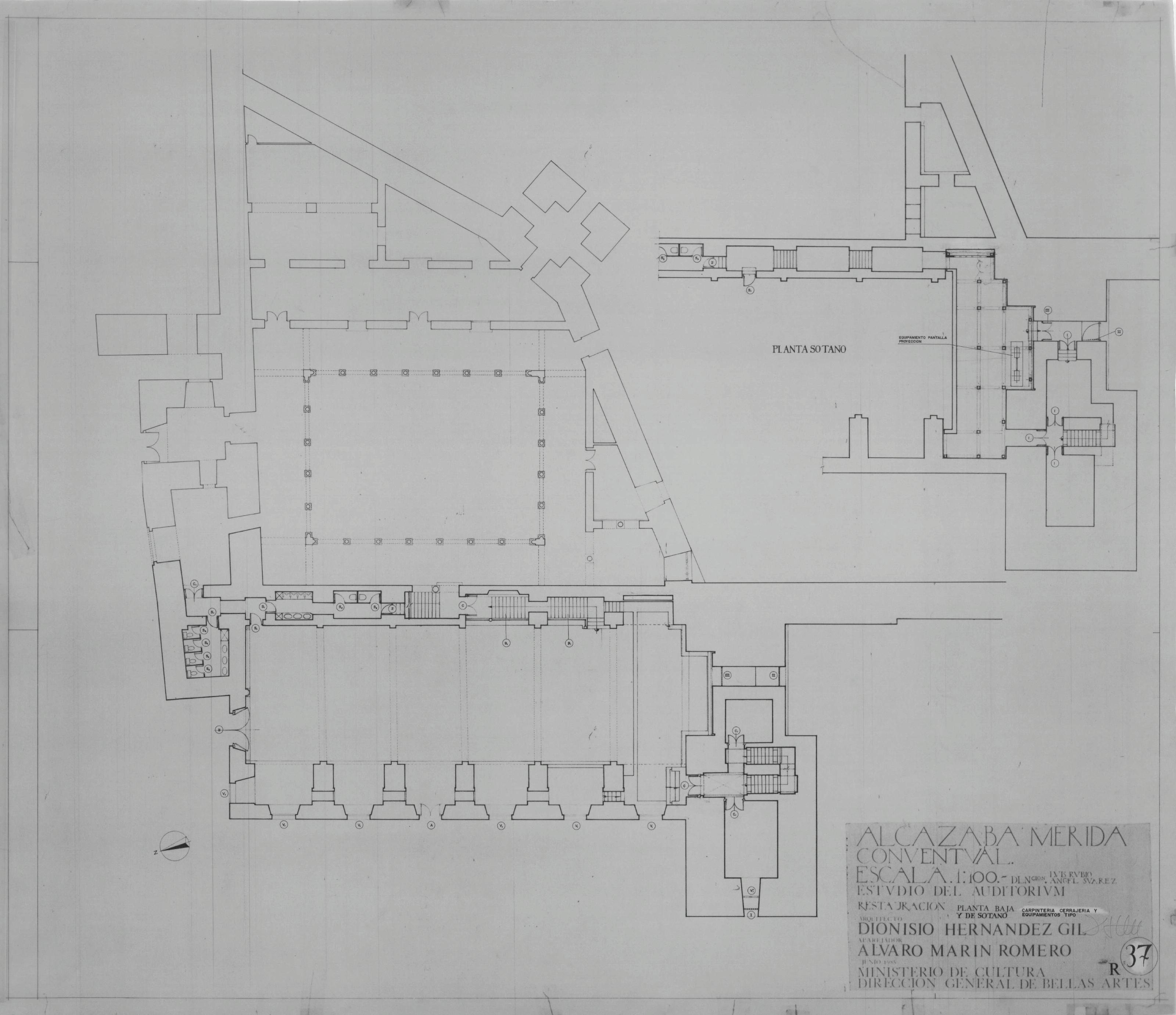 ALCAZABA DE MERIDA (Badajoz) Estudio del Auditorium: PLANTAS BAJA Y SOTANO - Restauración - CARPINTERIA Y CERRAJERIA Y EQUIPAMIENTOS TIPO Cada unidad de carpintería interior y exterior con una nomenclatura para identificarla en memoria. Firmado