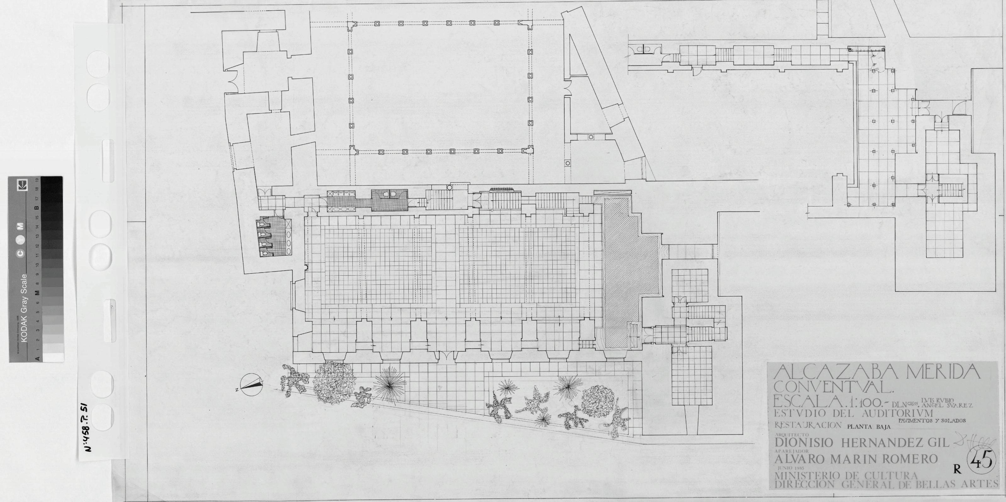 ALCAZABA DE MERIDA (Badajoz) Estudio del Auditorium: PLANTAS BAJA Y SOTANO - Restauración - PAVIMENTOS Y SOLADOS Con despiece de solados en todas las estancias También se representan zonas en madera y jardinería. Firmado