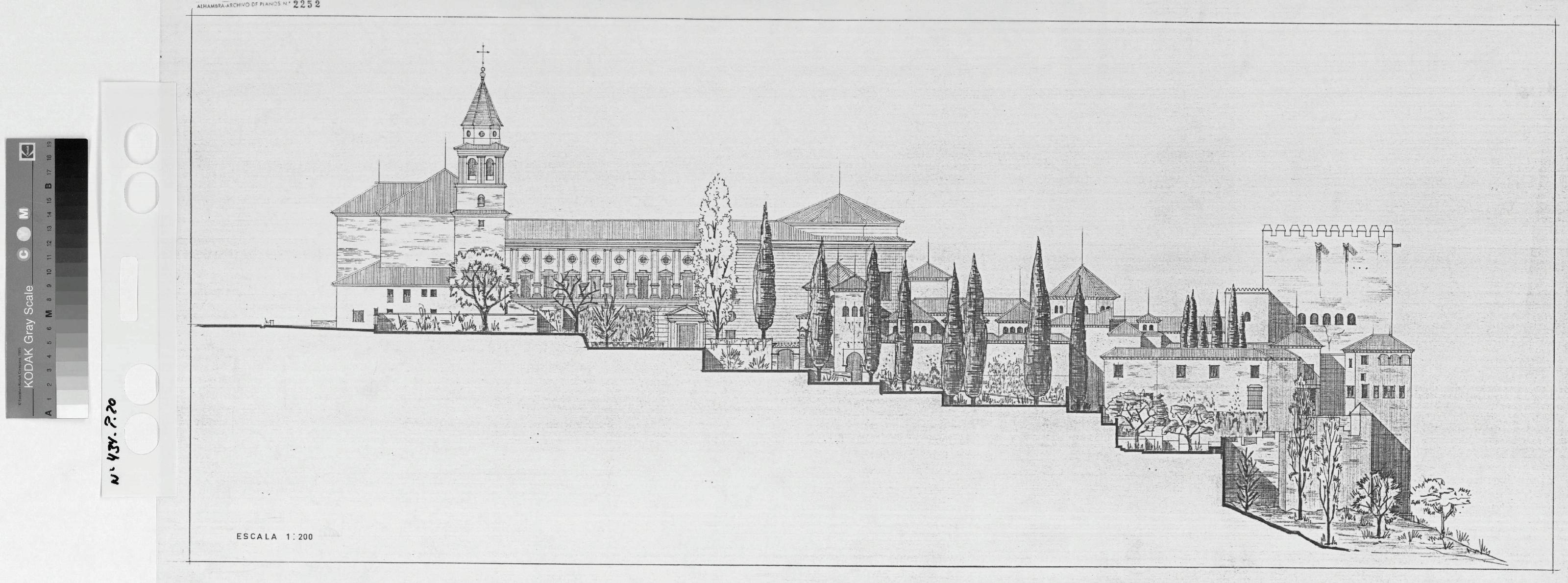 PALACIO DE CARLOS V. - LA ALHAMBRA . -GRANADA-: ALZADO dibujado con mucho detalle, plano sin cotas.