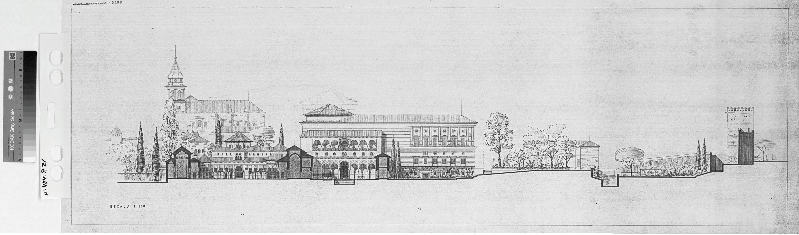 PALACIO DE CARLOS V. - LA ALHAMBRA . -GRANADA-: ALZADO, dibujado con mucho detalle, plano sin cotas.
