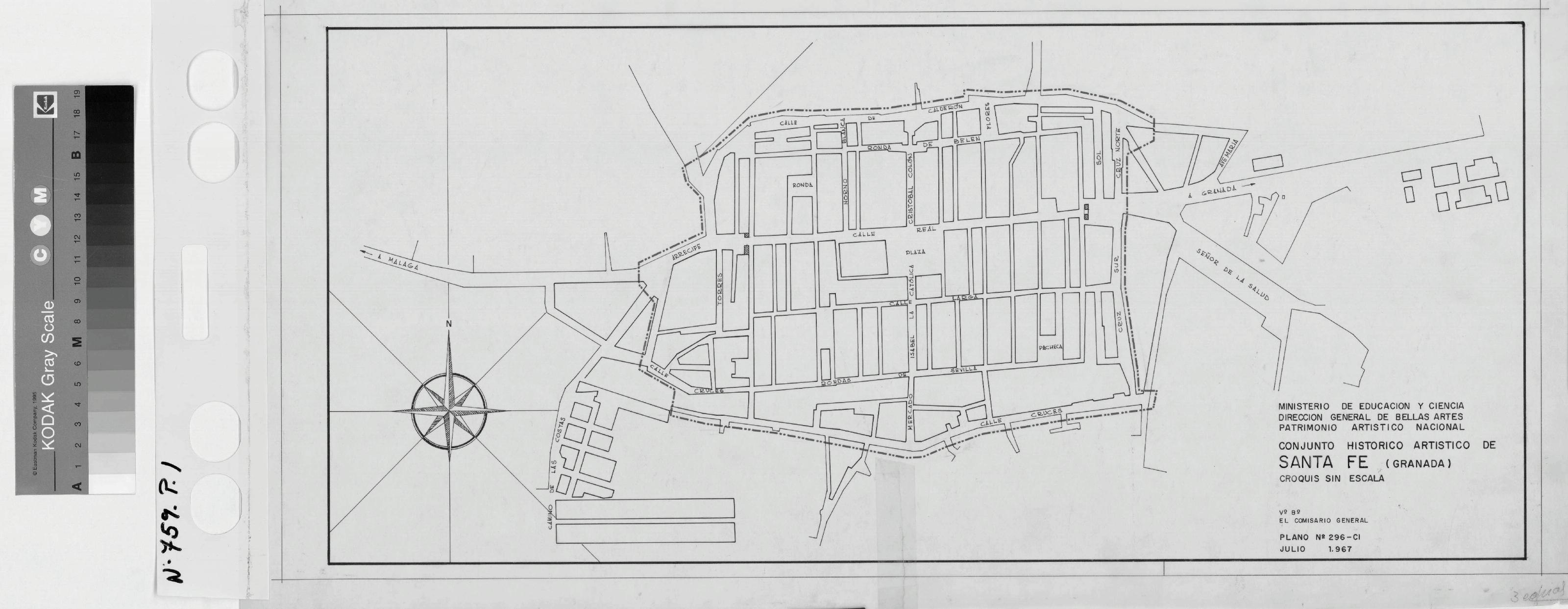 CONJUNTO HISTORICO ARTISTICO DE SANTA FE - GRANADA-: PLANTA GENERAL del Conjunto sin escala .Este plano marca la delimitacion del conjunto, con nomenclatura de calles, plano sin acotar.