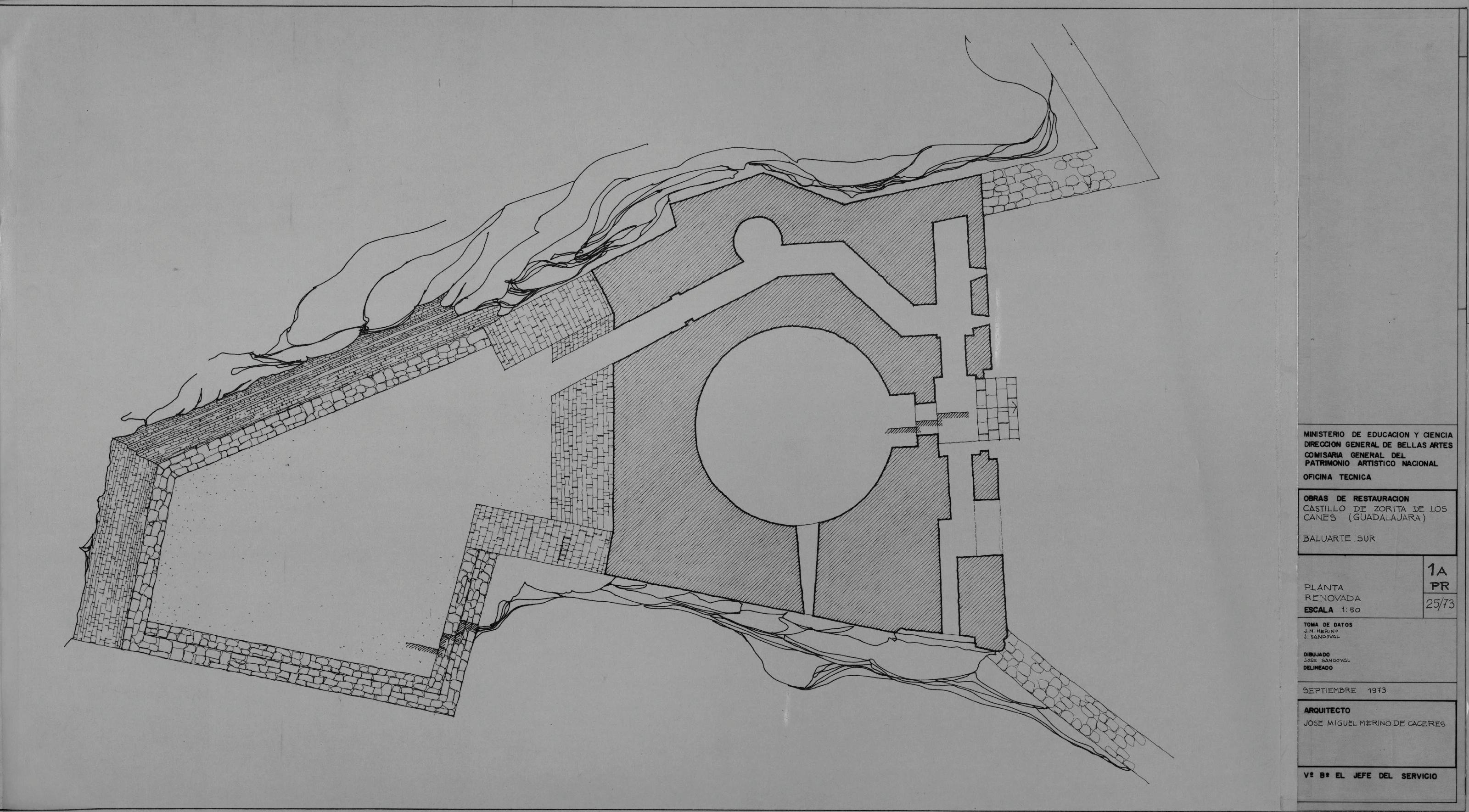 CASTILLO DE ZORITA DE LOS CANES. - GUADALAJARA -: BALUARTE SUR. - PLANTA RENOVADA. Plano sin cotas.