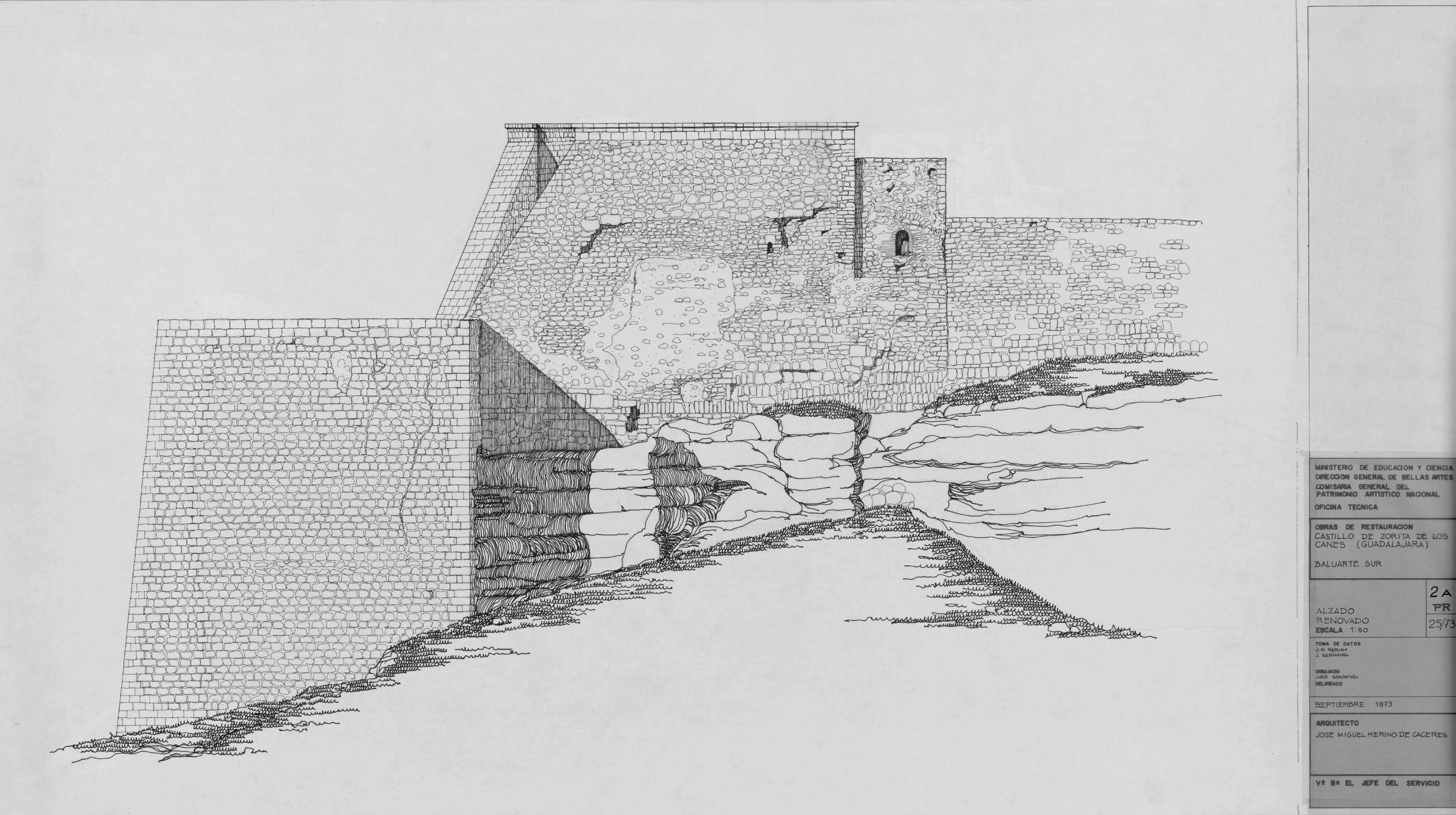 CASTILLO DE ZORITA DE LOS CANES. - GUADALAJARA -: BALUARTE SUR. - ALZADO RENOVADO. Plano sin cotas.