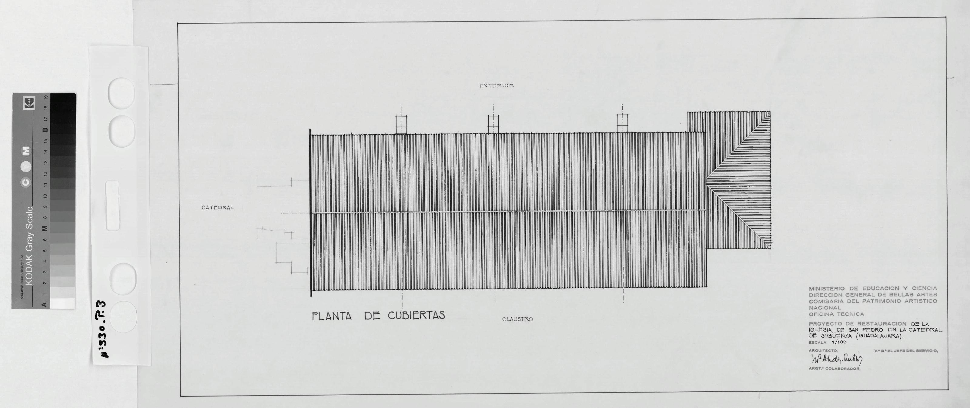IGLESIA DE SAN PEDRO EN LA CATEDRAL DE SIGÜENZA - GUADALAJARA-: PLANTA DE CUBIERTAS. Planta de cubierta con las pendientes de agua dibujada, plano sin cotas