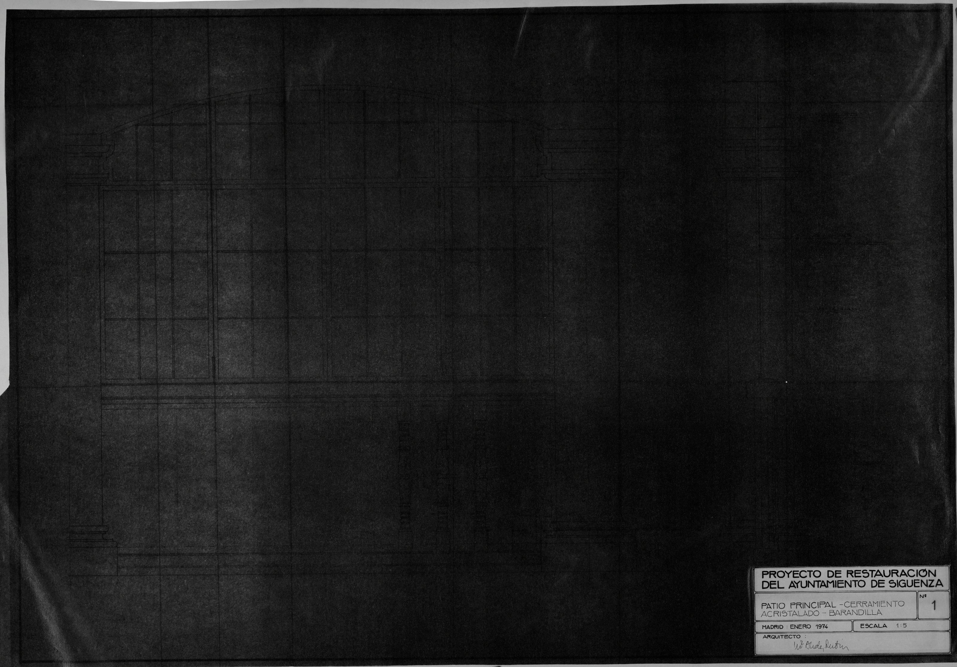 AYUNTAMIENTO DE SIGÜENZA - GUADALAJARA-: PATIO PRINCIPAL - CERRRAMIENTO ACRISTALADO -BARANDILLA. Detalles alzado y seccion, plano sin cotas.