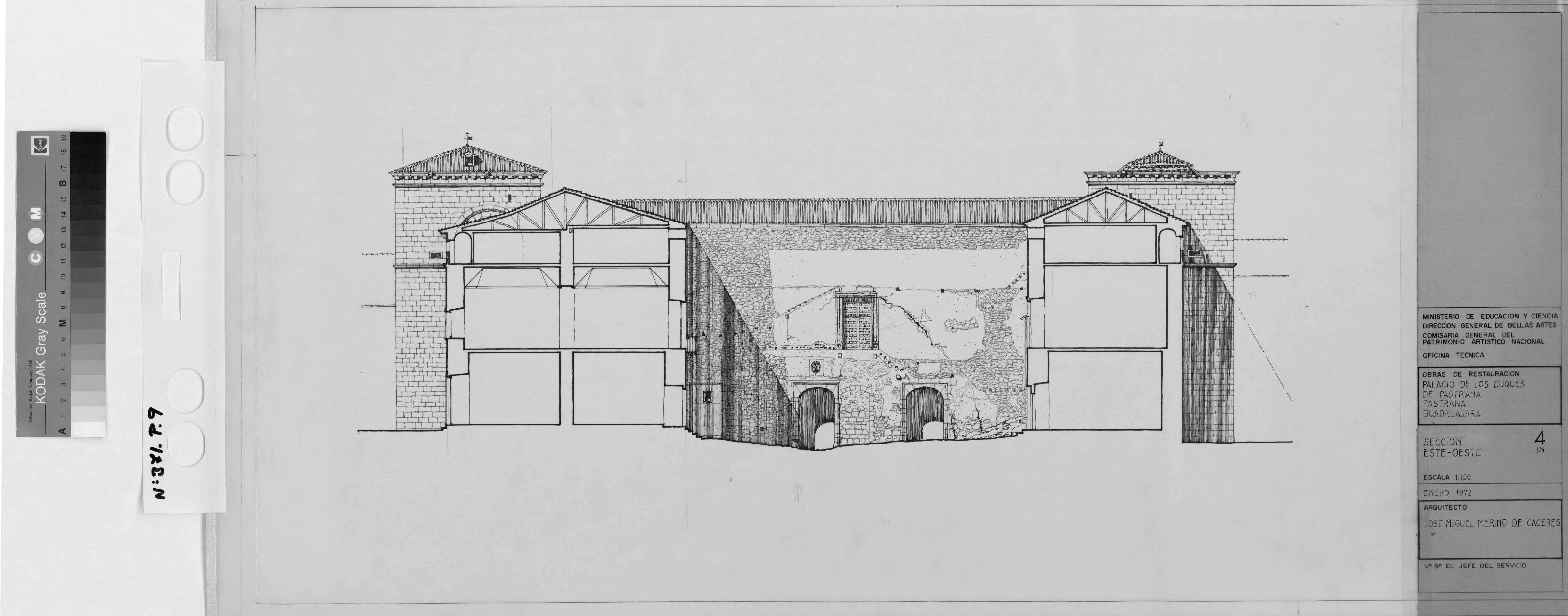 PALACIO DE LOS DUQUES DE PASTRANA - GUADALAJARA-: SECCION ESTE-OESTE. Plano de seccion dibujado con detalle, sin acotar.