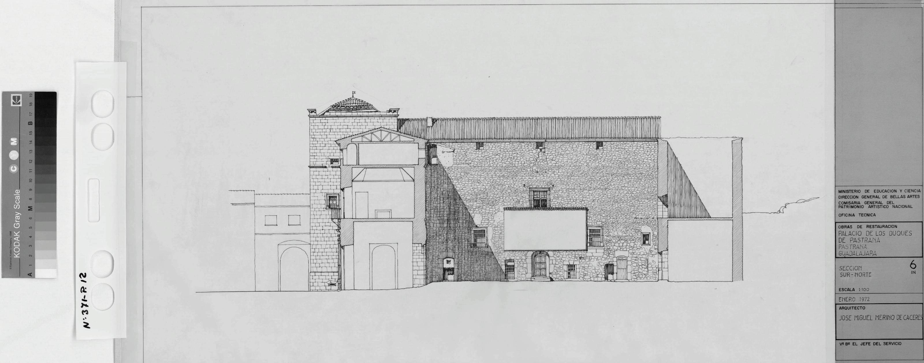PALACIO DE LOS DUQUES DE PASTRANA - GUADALAJARA-: SECCION SUR-NORTE, plano de seccion , dibujado con detalle , plano sin alturas ni cotas,