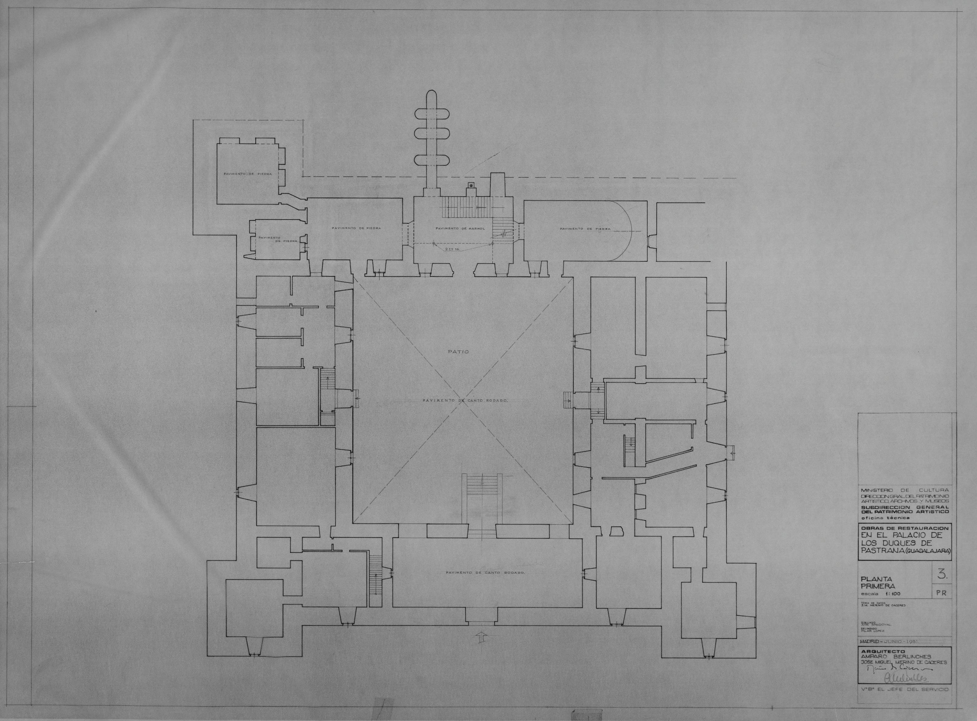PALACIO DE LOS DUQUES DE PASTRANA - GUADALAJARA-: PLANTA PRIMERA. Planta , señala varias zonas de pavimentos distintos, plano sin cotas.