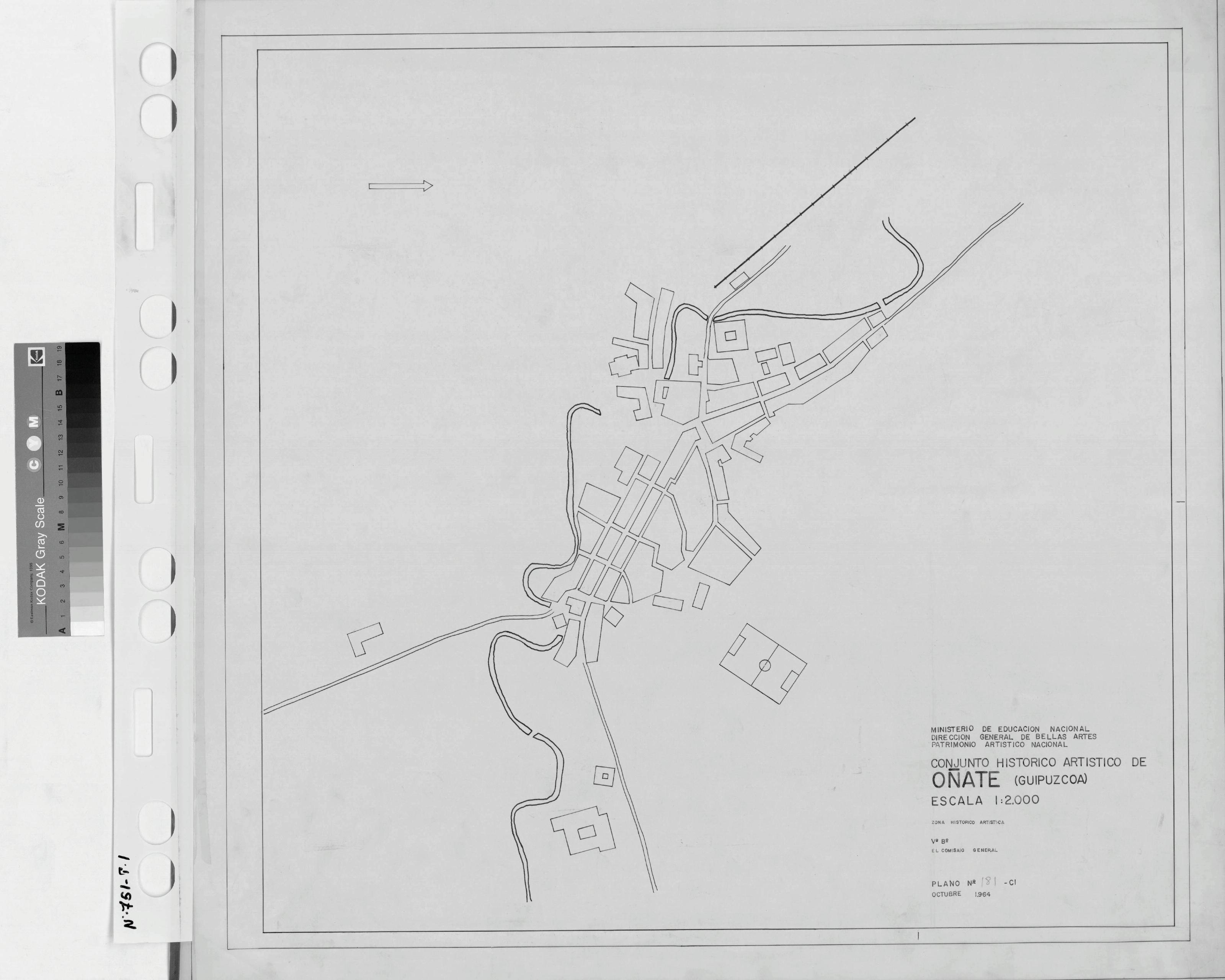 CONJUNTO HISTORICO ARTISTICO DE OÑATE (Guipúzcoa): CONJUNTO HISTORICO ARTISTICO Ubicación de solares . Anota en el sello el nº de plano original 181-CI. Sin notas ni cotas y sin firmar.