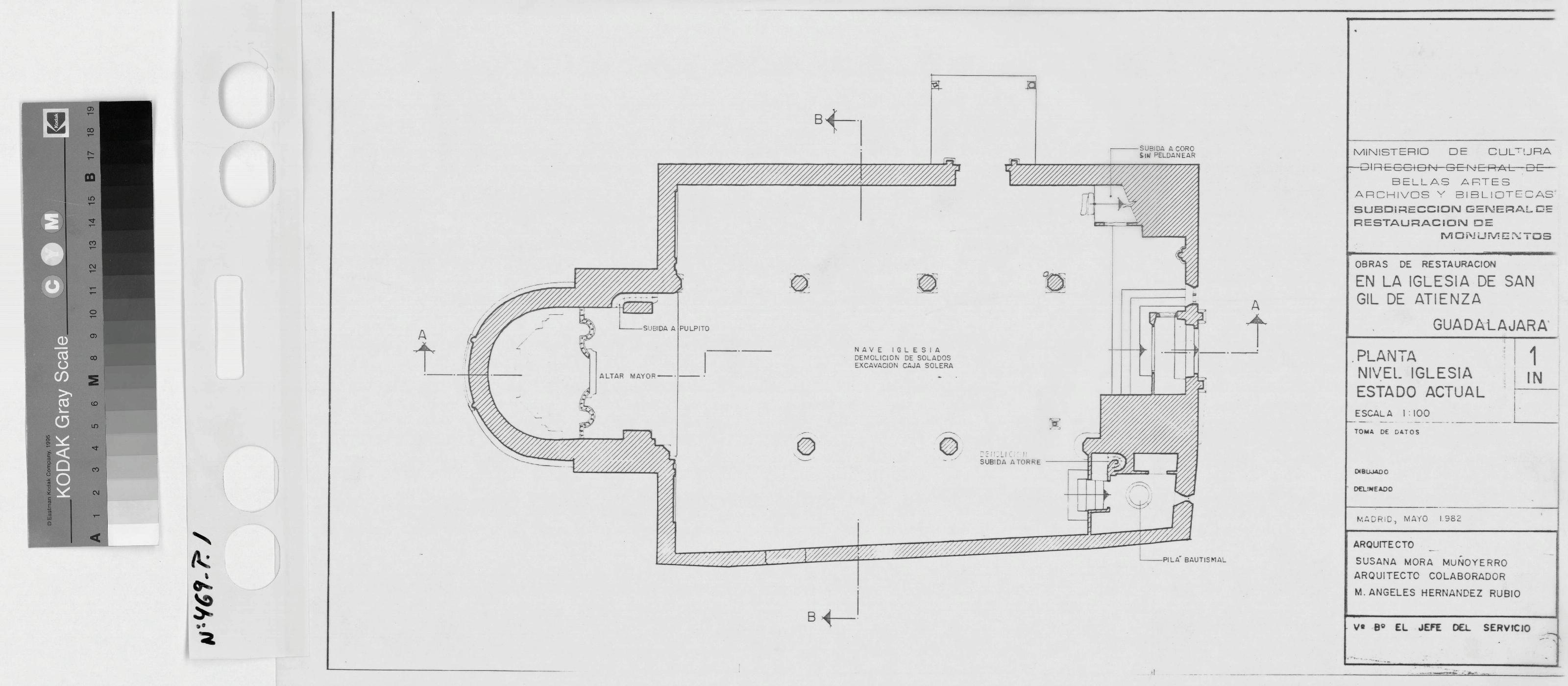 IGLESIA DE SAN GIL - ATIENZA - GUADALAJARA -: PLANTA NIVEL IGLESIA, Estado Actual, plano con muros regruesados, y descripcion de elementos, plano sin cotas,