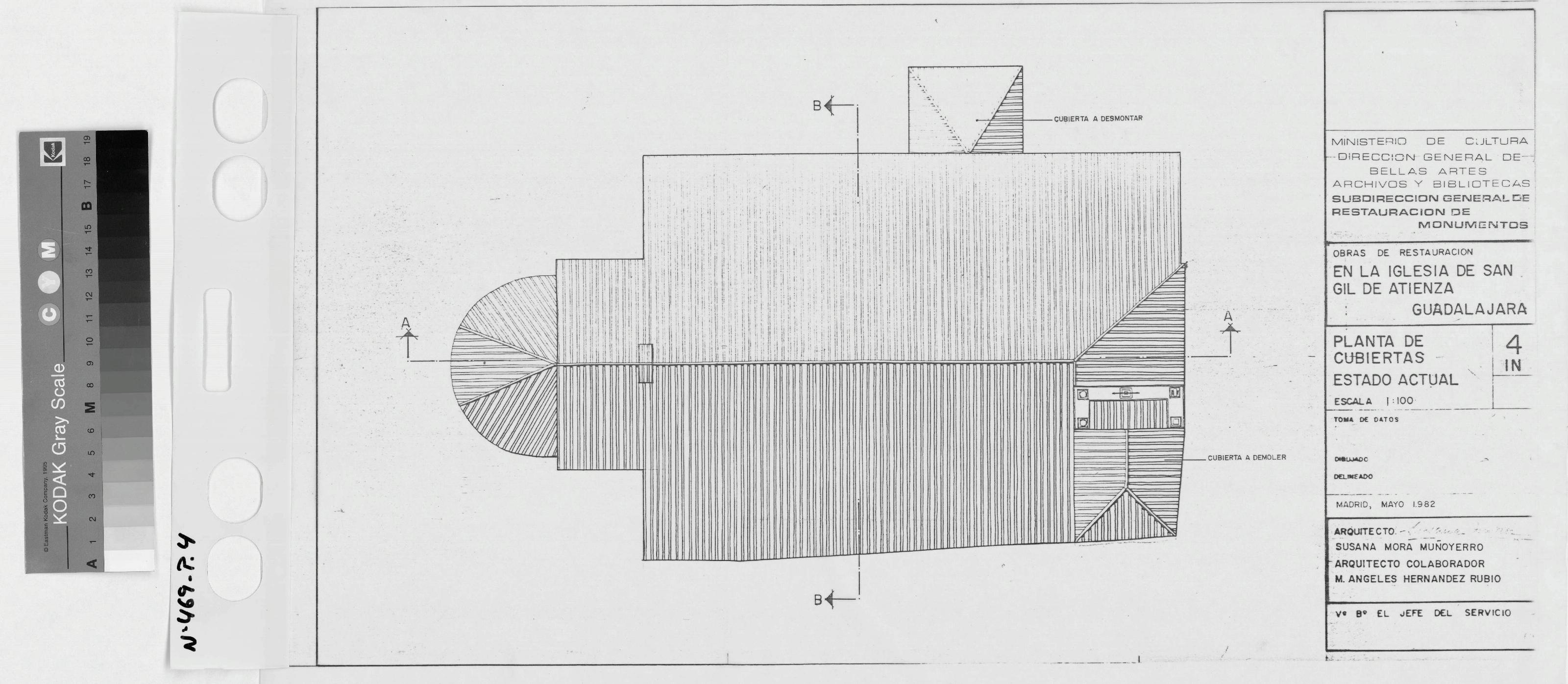IGLESIA DE SAN GIL - ATIENZA - GUADALAJARA -: PLANTA de CUBIERTAS, Estado Actual, marca una zona de cubierta a demoler y otra a desmontar, plano sin cotas,