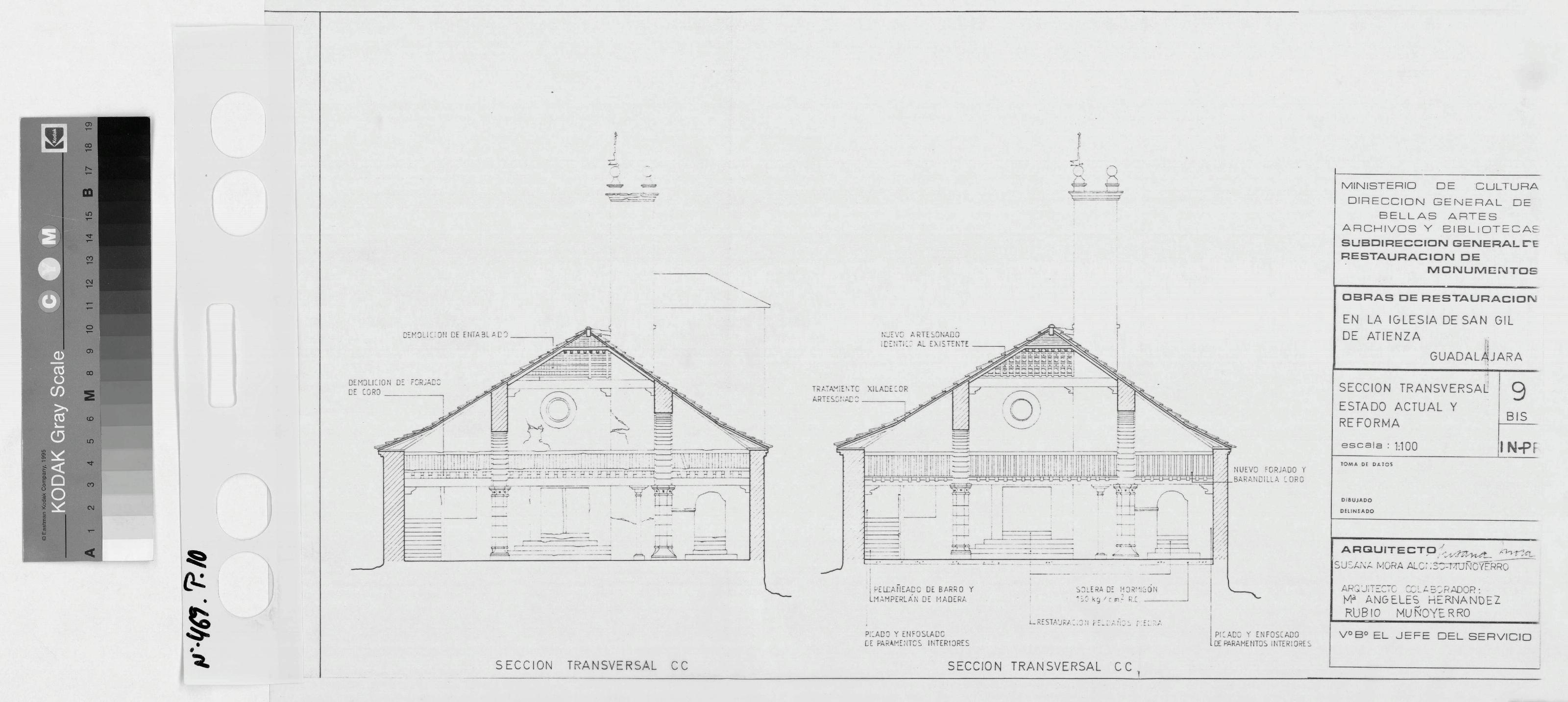 IGLESIA DE SAN GIL - ATIENZA - GUADALAJARA -: SECCION transversal, estado actual y reformado señala en el plano las labores a realizar. plano sin cotas,