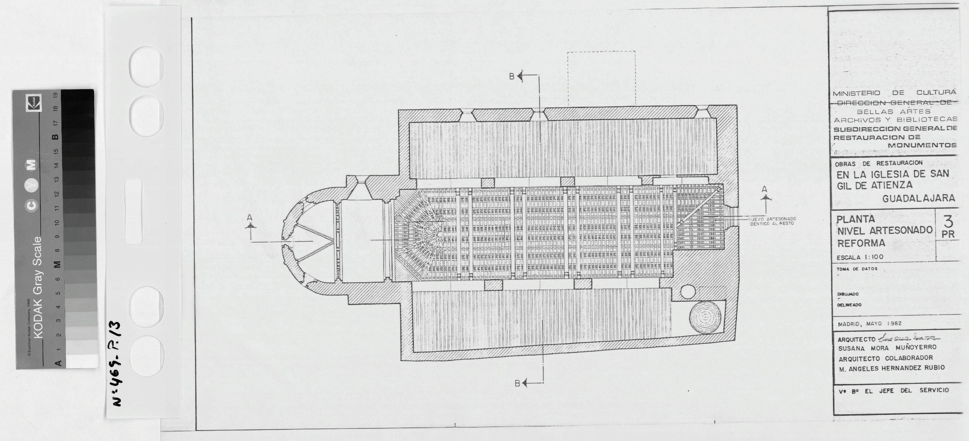 IGLESIA DE SAN GIL - ATIENZA - GUADALAJARA -: PLANTA NIVEL ARTESONADO, reformado señala en el plano las labores a realizar plano sin cotas,
