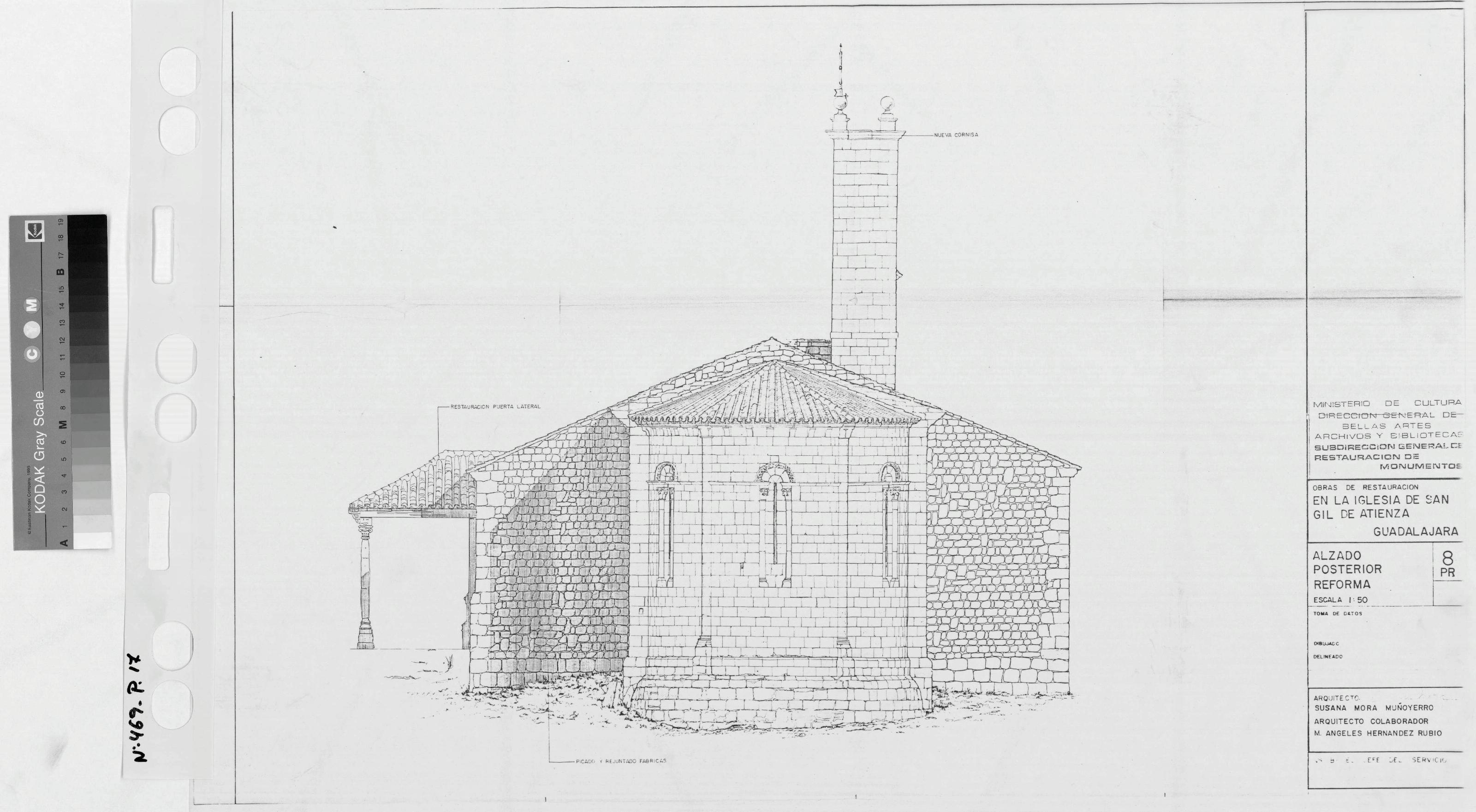 IGLESIA DE SAN GIL - ATIENZA - GUADALAJARA -: ALZADO POSTERIOR, reformado señala en el plano las labores a realizar plano sin cotas,